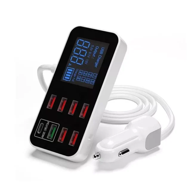 This isn’t just another car charger. Our Multi-Device Fast Charging Hub is equipped with 7 USB ports and 1 Type-C port, backed by the latest PD and QC3.0 technology for quick charging capabilities. The digital LED display ensures you’re always aware of the voltage and current, enhancing safety and control. Crafted from durable PC + ABS fire retardant materials and designed with a sophisticated internal copper core, it guarantees a reliable charging experience for a variety of digital devices.