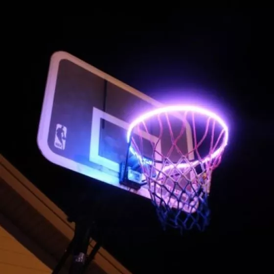 I ordered this basketball hoop lights for our portable hoop in the yard. Firstly I was afraid that the lights will not fit our hoop, but when we received the item, we found it just fit the size of our hoop. And there are 12 zip ties, 2 pieces of 3M double-sided tapes to install the lights. My two kids do not like to do any sports, but I like playing basketball very much. So in order to encourage my kids to do some sports, I bought a portable hoop and this rim lights. After I installed the lights around the basketball rim, I began to shot the ball into the rim, then the light glow up instantly. My two kids were fascinated by the amazing and cool light effect. Then they tried to shoot the ball themselves, when they started, they could not stop. Finally, my two kids love the sport of basketball playing now because of this cool basketball hoop lights. All in all, I am very satisfied with my purchase this time!