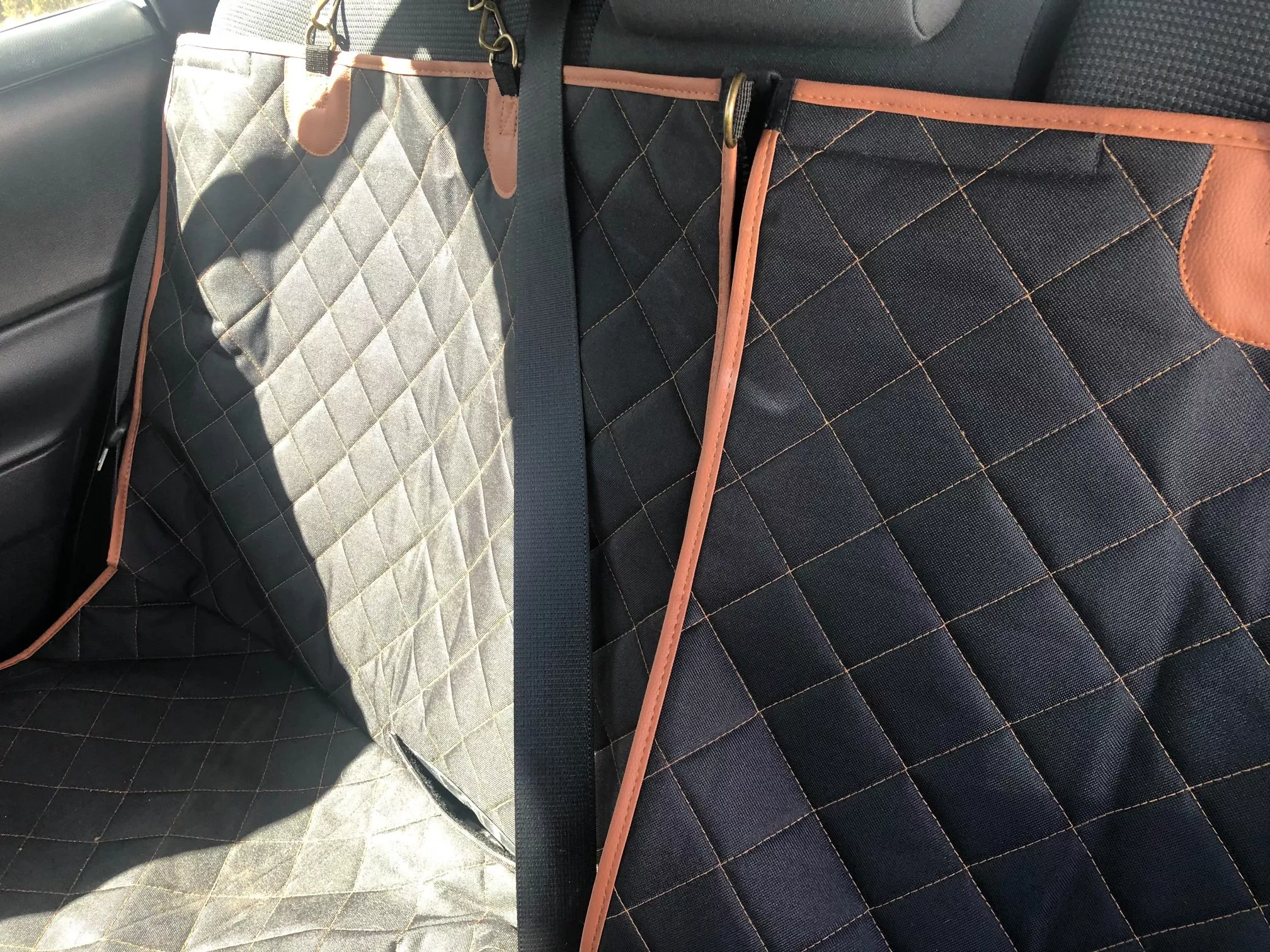 I really love this call protective seat cover it was easy to install and water resistant easy to clean and my dog absolutely loves it Plus it has nice big pockets to put water bottles and collapsible bowl. I would definitely recommend this. It was worth the price.