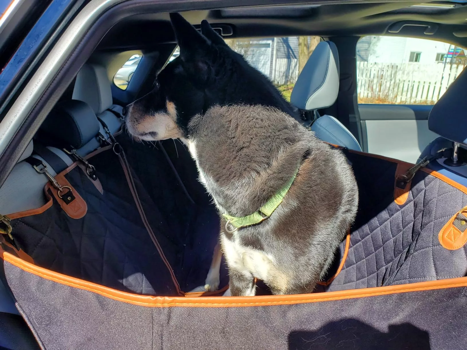 This product exceeded my expectations! It fit perfectly in the back of my Ford Escape, buckled nicely around each headrest, and doesn’t slip and slide when my doggo is hanging out on it. Offers good protection for my car seats and looks sleek too. Highly recommend!