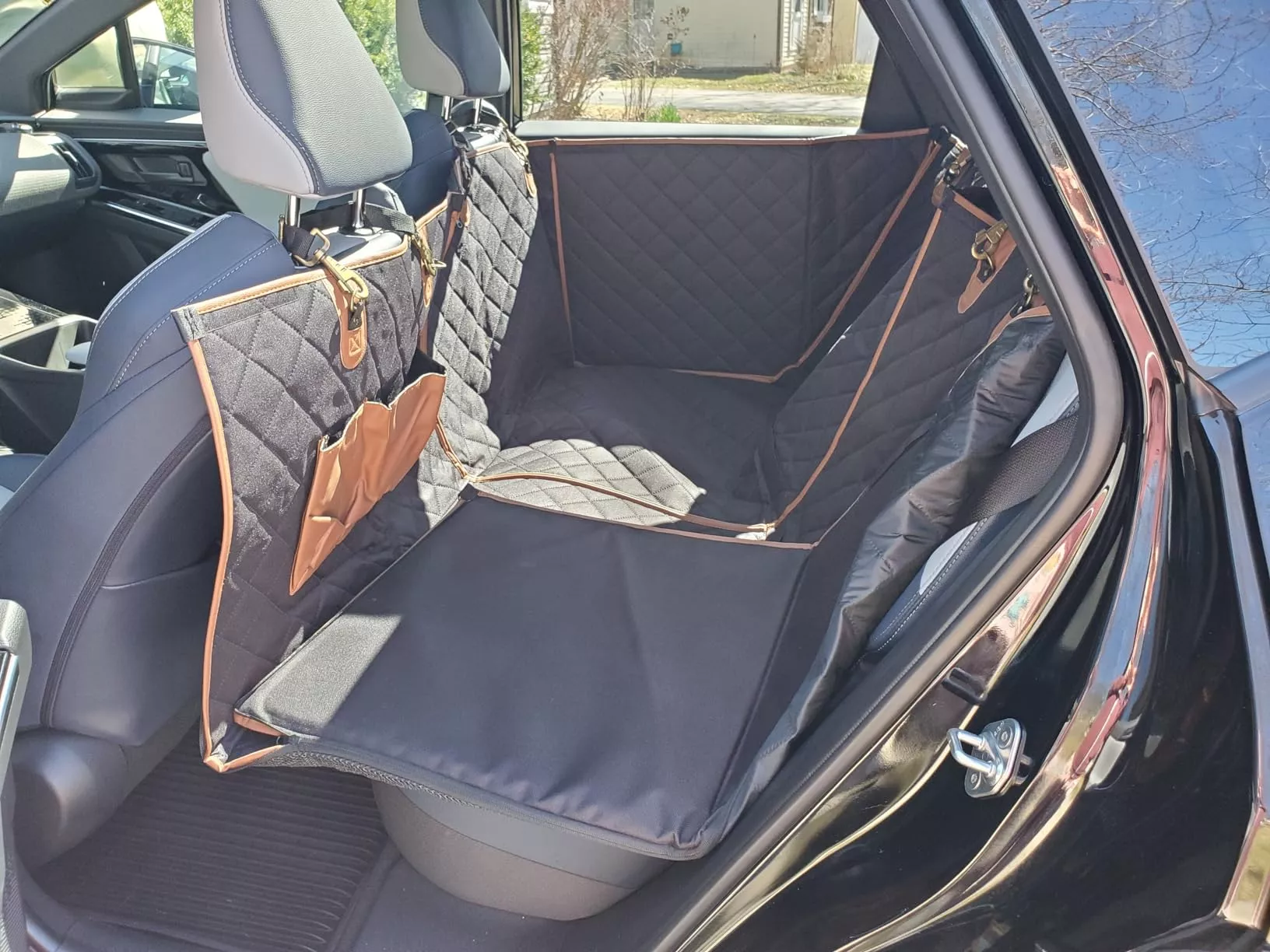 I bought this car dog hammock in February and now I can honestly say that I've found the perfect solution for rides with my dog. The hammock itself is well-crafted and made from high-quality, water-resistant material. It provides excellent protection for my seat upholstery and is very easy to clean. What sets this travel buddy car hammock apart from other similar products is its cute, yet thoughtful design. The built-in storage pockets turned out to be very convenient for storing my dog's leash, toys, and treats, making it easier to keep everything organized during our trips. I'm thrilled with my purchase and highly recommend this car hammock to any dog owner 👍