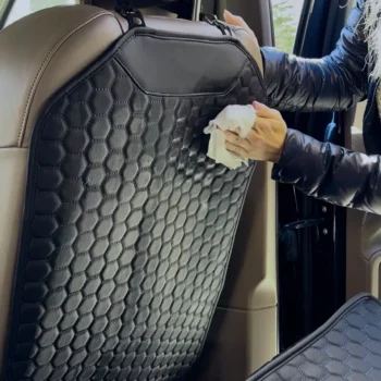 This seat back protector has been a fantastic addition to my car. it fits perfectly and stays in place, even with my kids constantly kicking it. the material is strong and easy to clean, which is a huge plus. i love that it blends in with my car’s interior and doesn’t look out of place. installation was quick and simple – just strap it on and you’re good to go. it’s been great for protecting my seats from dirt, scuff marks, and spills. my car looks so much cleaner now, and i don’t have to worry about my kids ruining the upholstery. this protector has been a lifesaver and i highly recommend it to anyone who wants to keep their car seats looking new and well-maintained.