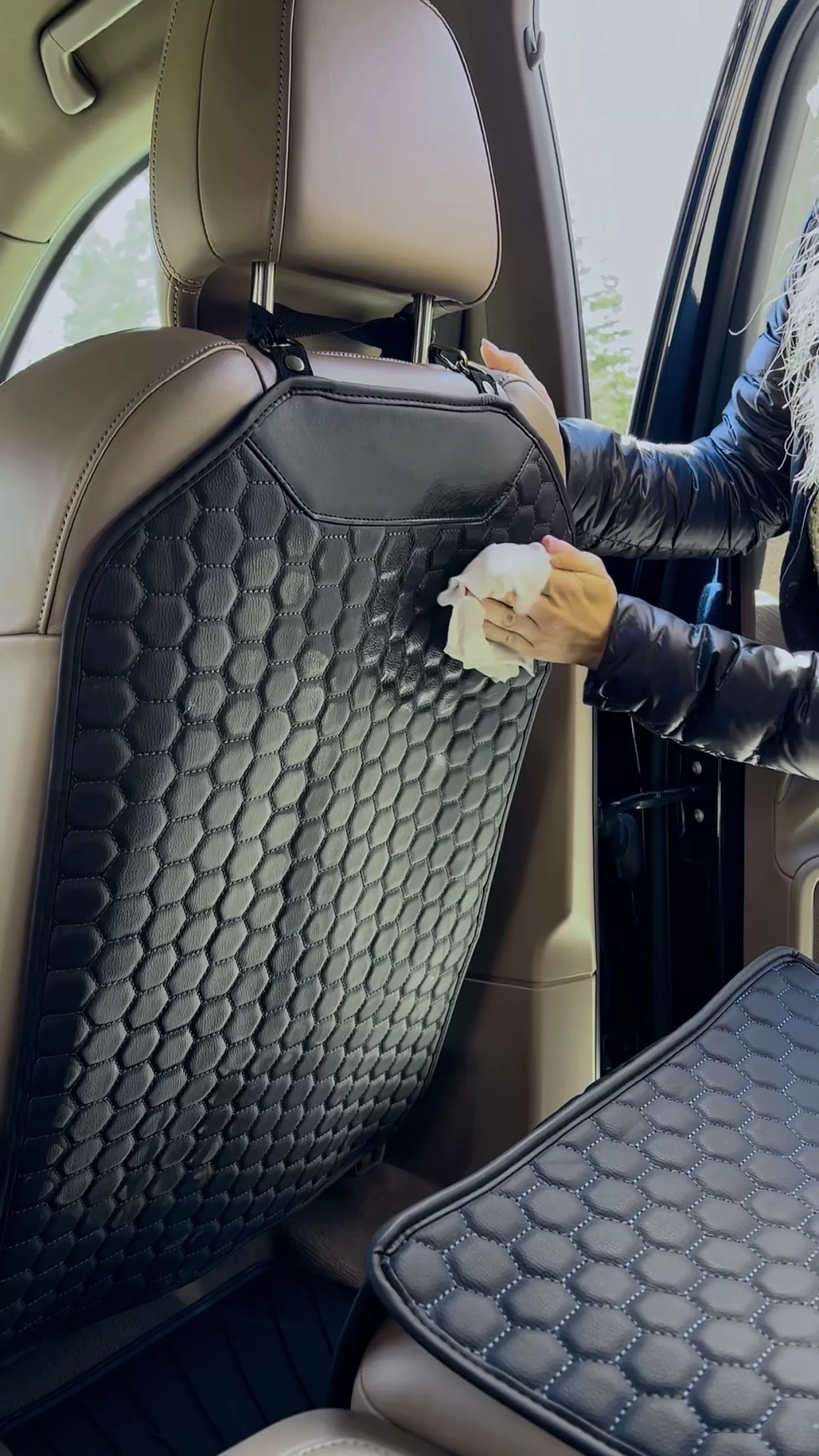 This car seat back protector is exactly what i needed to keep my car clean. it’s easy to install and stays put, even with my kids constantly kicking it. the material is durable and easy to clean, which is great for maintaining the appearance of my car. it fits perfectly and doesn’t interfere with the seat’s functionality. i love that it blends in with the car’s interior and doesn’t look out of place. this protector has made a big difference in keeping my seats free from dirt and scuff marks. it’s a simple yet effective solution for anyone looking to keep their car seats in good condition. highly recommend it.