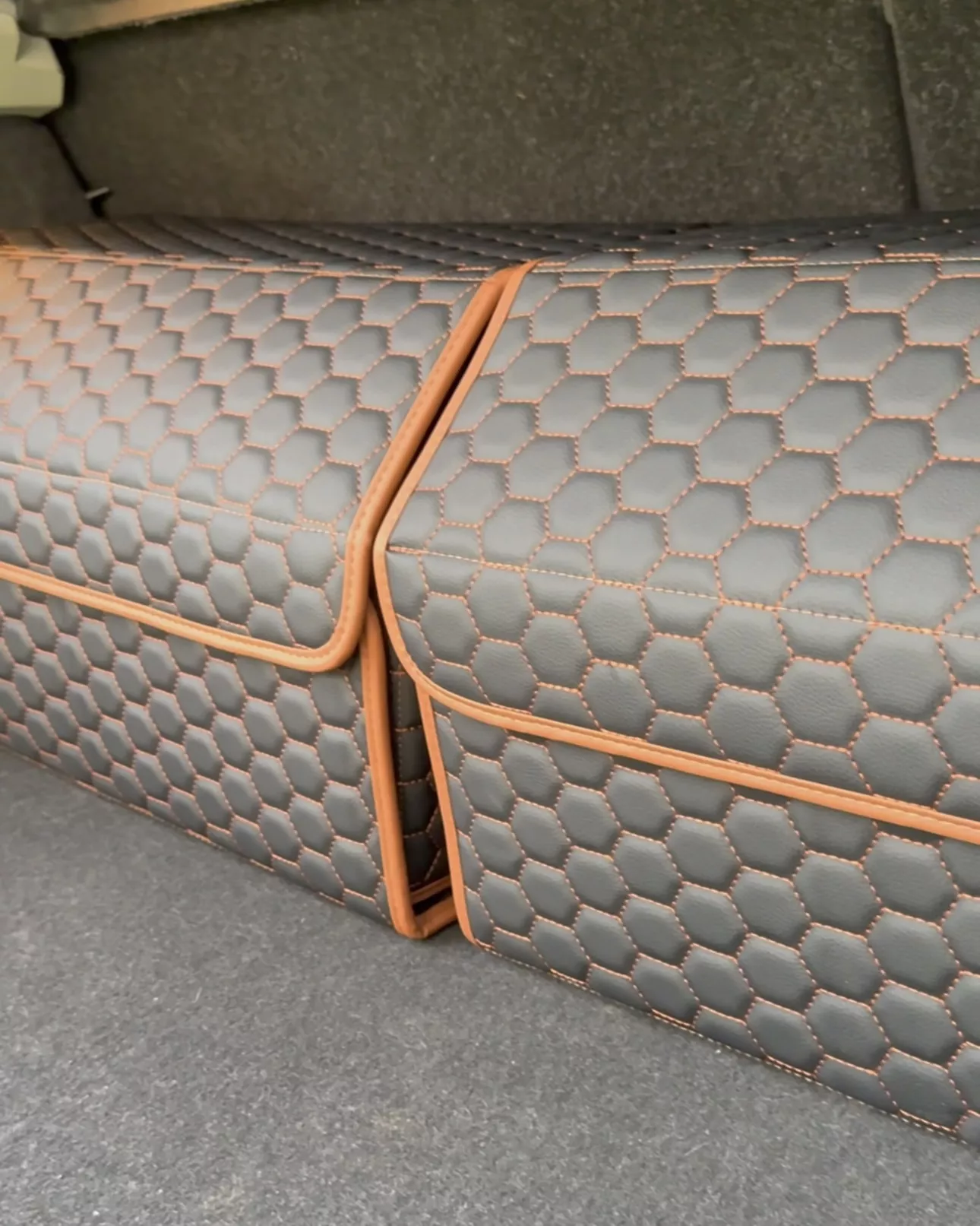 Durability meets style with this trunk organizer - crafted from premium materials like eco-leather and Oxford fabric plus reinforced with hard PVC inserts ensures longevity while still looking sleek