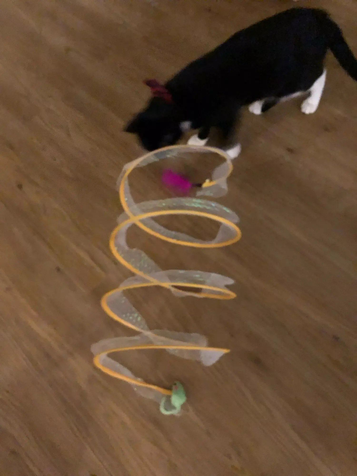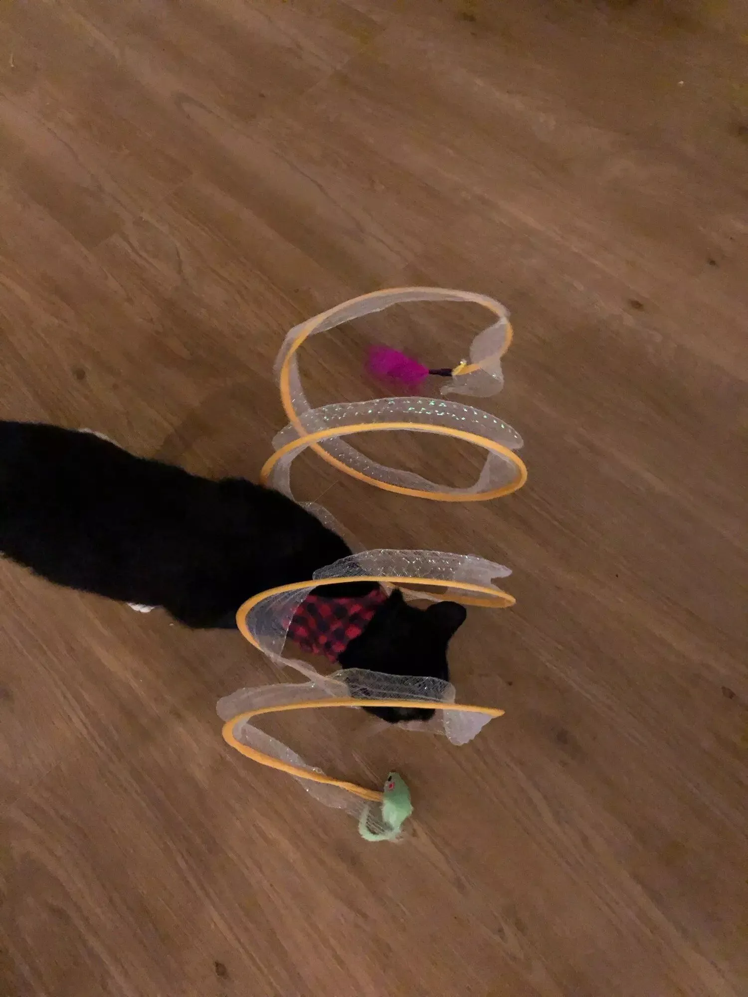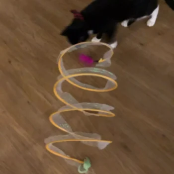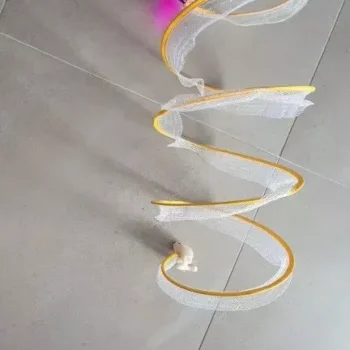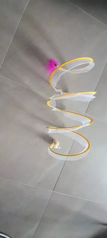 Walter, our cat, has been thoroughly intrigued by this open spiral tunnel, offering him a new source of entertainment.