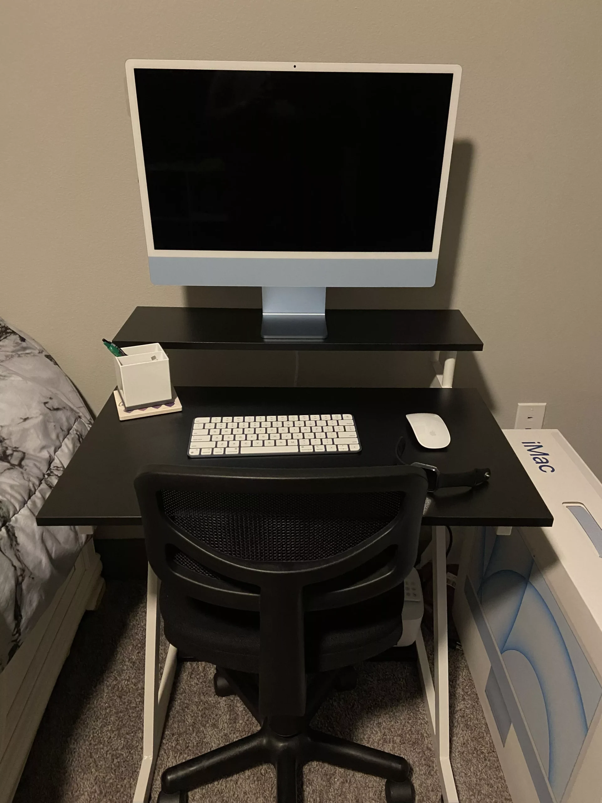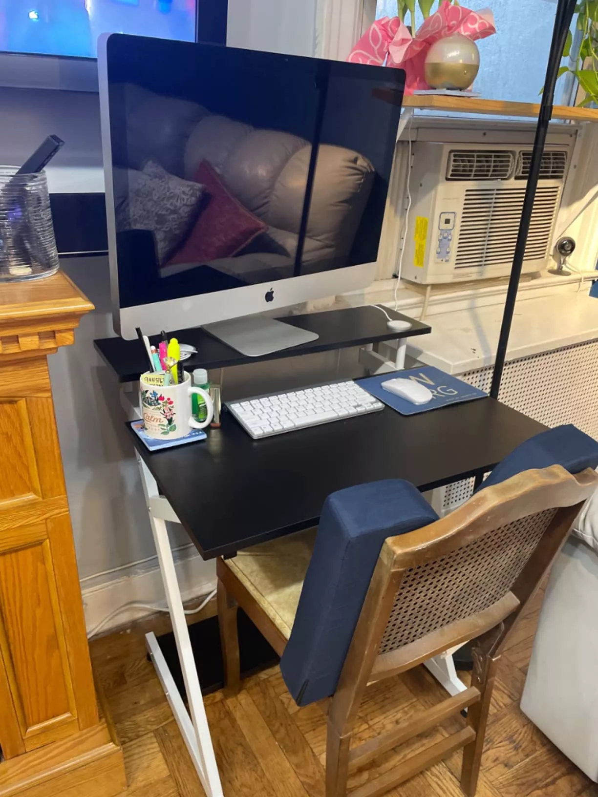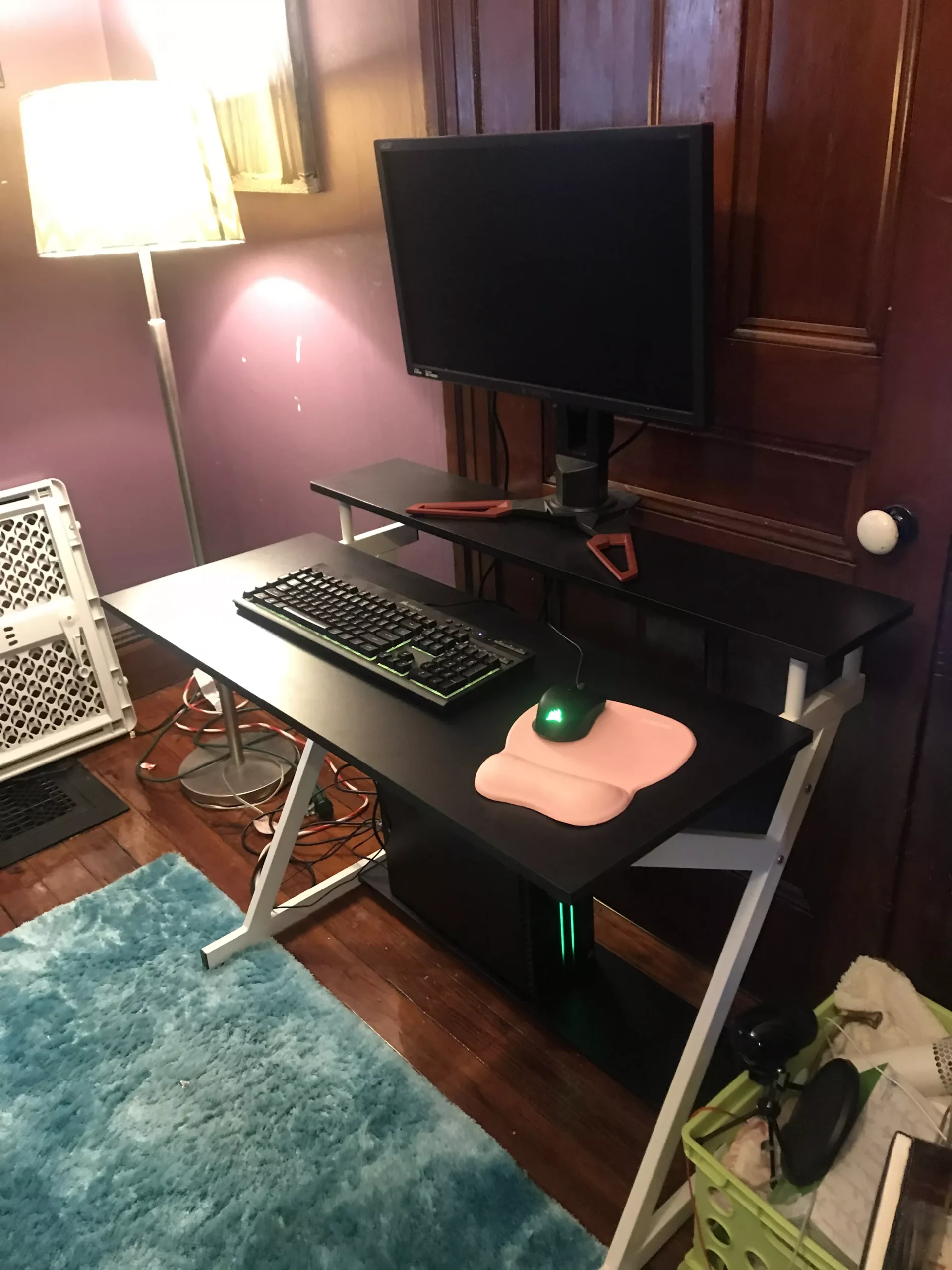 Fits my tiny space perfectly and is very stable. The monitor shelf is a big plus. Great desk!