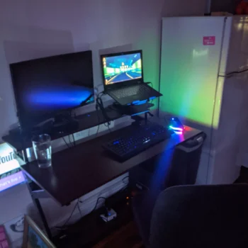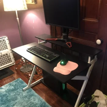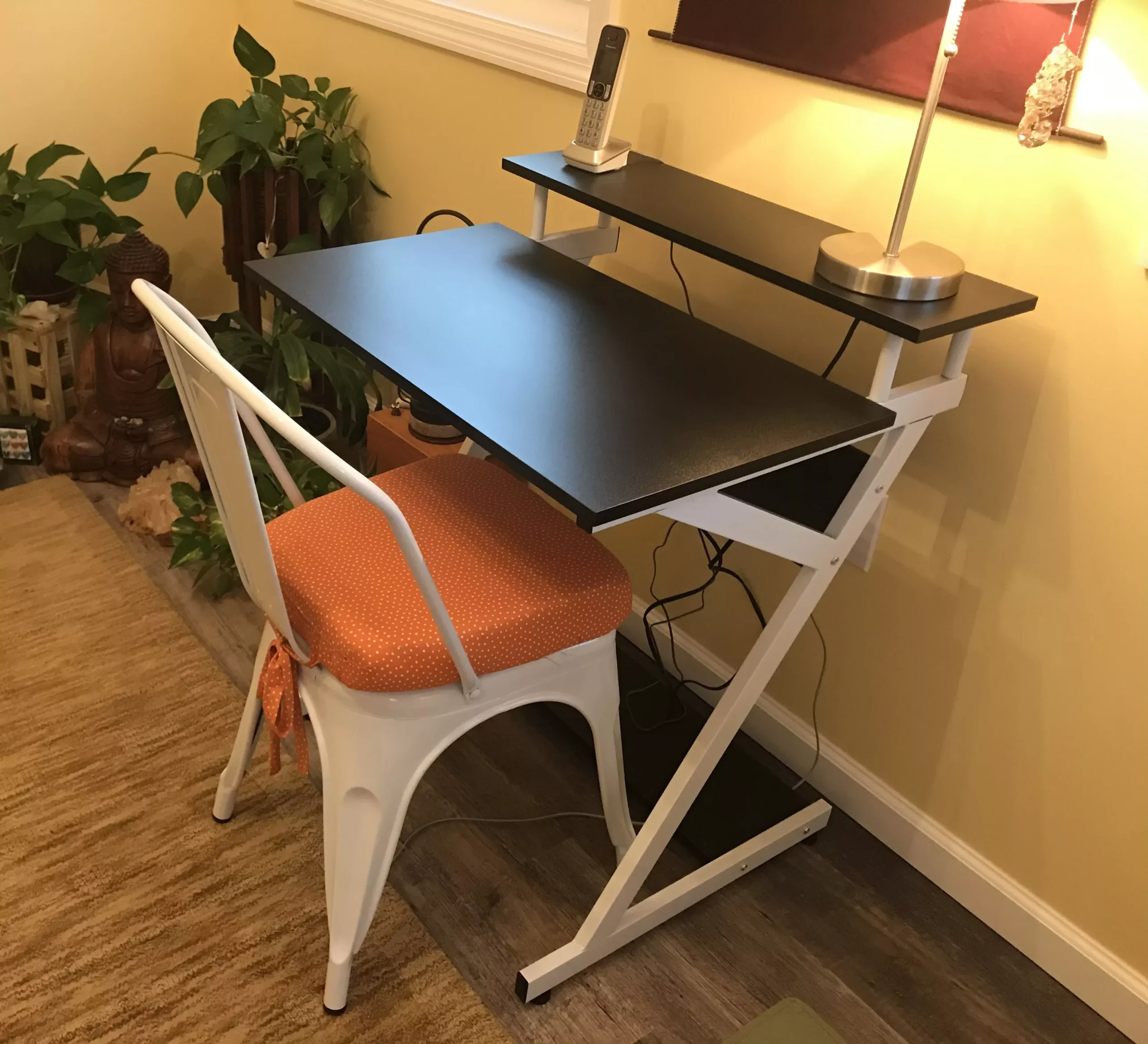 Compact, sturdy, and looks good. The Z-shape design and monitor shelf are perfect for my needs.