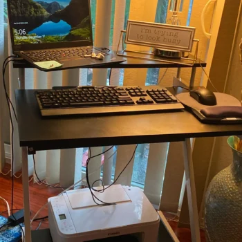As someone who appreciates both form and function, this Z-shaped computer desk has been a fantastic addition to my apartment. Its unique design is both aesthetically pleasing and practical for small spaces. The elevated monitor shelf has improved my viewing angle and desk organization, while the bottom shelf provides necessary storage for my books and tech gadgets. Assembling the desk was hassle-free, thanks to the clear instructions and included tools. It's a sturdy, stylish desk that fits perfectly in my limited space, proving that you don't have to compromise on style or functionality, even in a small home.