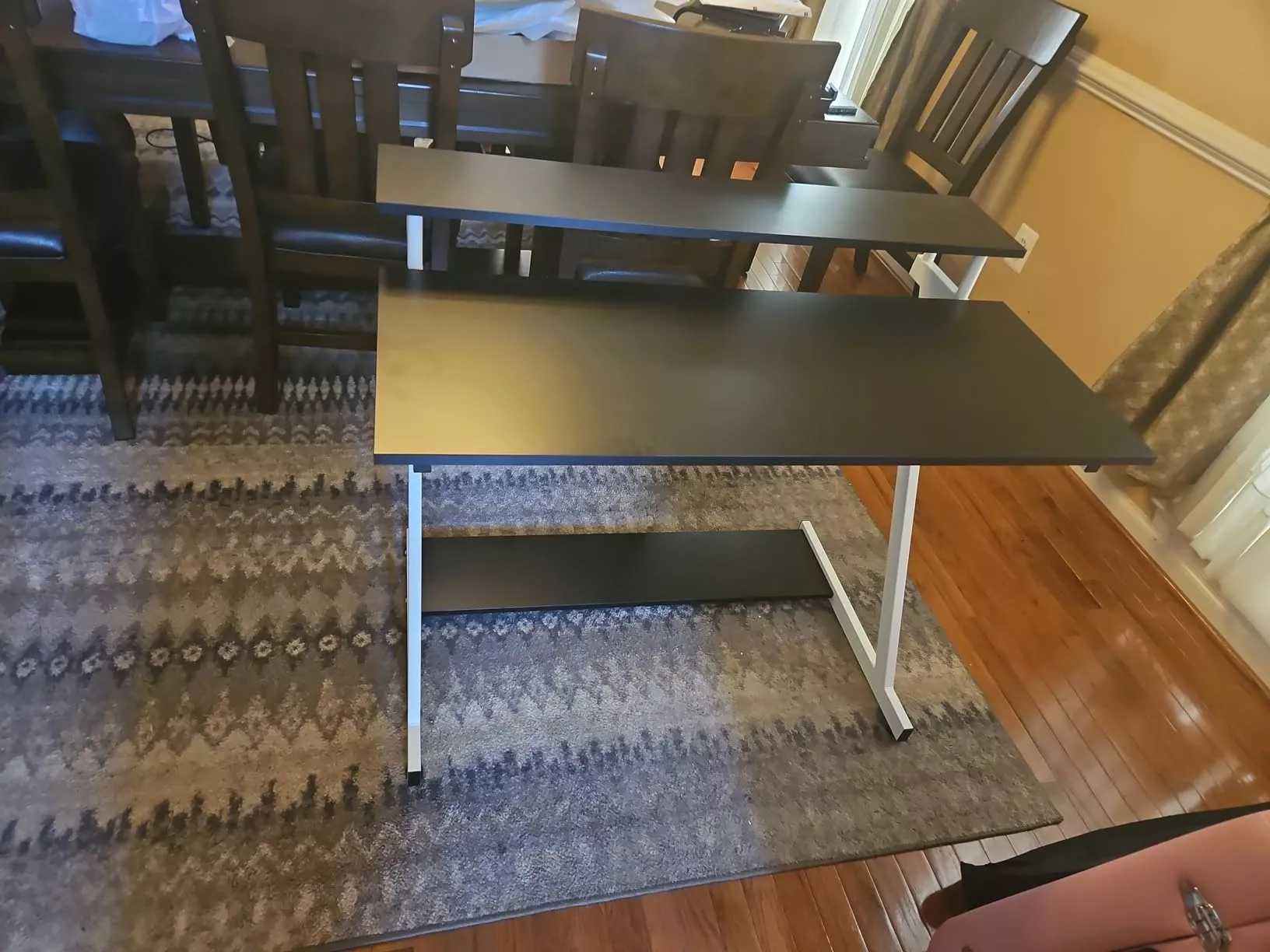 Finding a desk that fits in my cramped space while still being functional was a challenge until I discovered this Z-shaped desk. Its sleek design not only complements my decor but also offers the perfect workspace solution. The monitor shelf keeps my screen at an ideal height, reducing neck strain, and the bottom shelf provides ample storage for my essentials. T he assembly process was straightforward, with clear instructions. It's sturdy, stylish, and the perfect size for small spaces. This desk has truly enhanced my productivity and comfort while working from home.