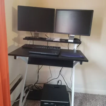 My quest for the perfect small-space desk ended with this Z-shaped marvel. Its sleek design immediately caught my eye, but the functionality has made it indispensable. The monitor shelf has not only improved my ergonomic setup but also created more usable desk space below. The bottom shelf is perfect for my CPU and books, effectively doubling as a footrest for added comfort. Assembly was straightforward, thanks to the clear instructions. This desk isn’t just furniture; it’s a space-optimizing solution that has made my work-from-home experience infinitely better.