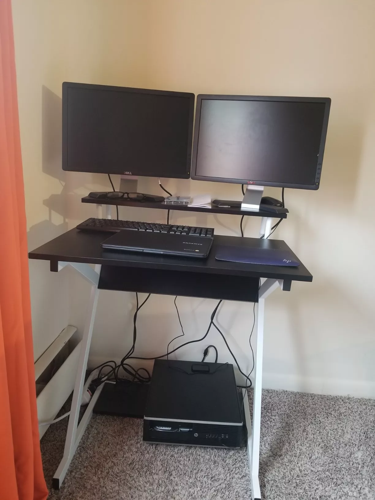Simple assembly, perfect for my small room. The monitor shelf saves so much space. Definitely recommend.