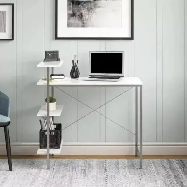 At the heart of this desk is its smart design, tailored to meet the needs of dedicated students and busy professionals. The spacious desktop offers ample room for your laptop, textbooks, and all your study essentials. Side shelving storage is a game-changer, providing easy access to textbooks, notebooks, binders, and tech gadgets. Keep your workspace clutter-free and your mind focused on the task at hand.