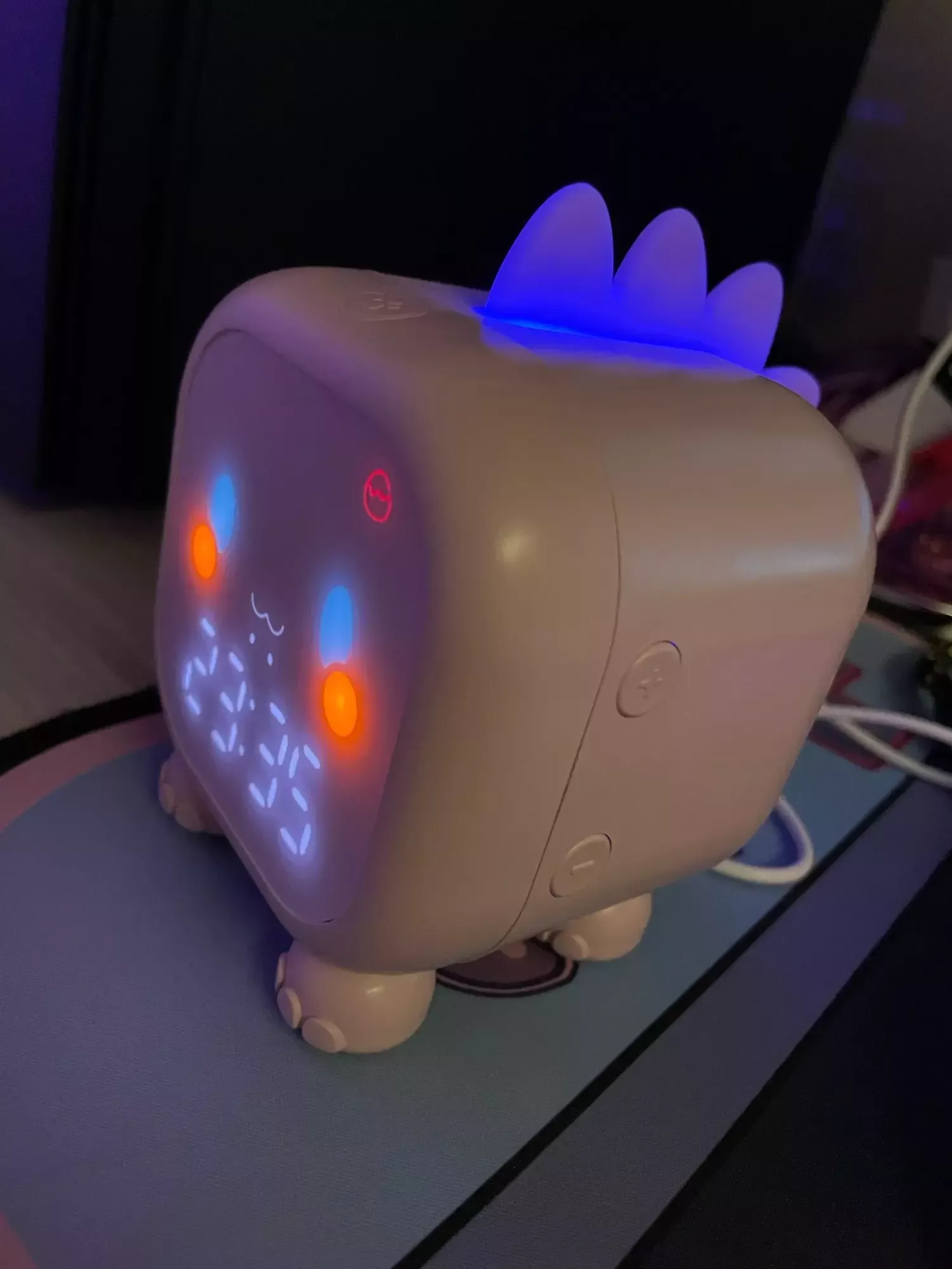 this clock is wonderful. the dinosaur design is cute and appealing to kids. the voice control is intuitive and works well. the night light provides a soothing glow that helps my child feel secure at night. the alarm is easy to set and wakes them up gently. it’s also built to last, with sturdy construction. it’s been a great addition to our routine, making mornings easier and nights more comfortable. highly recommend to any parent looking for a fun and functional alarm clock for their child.