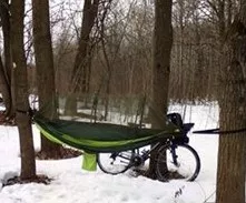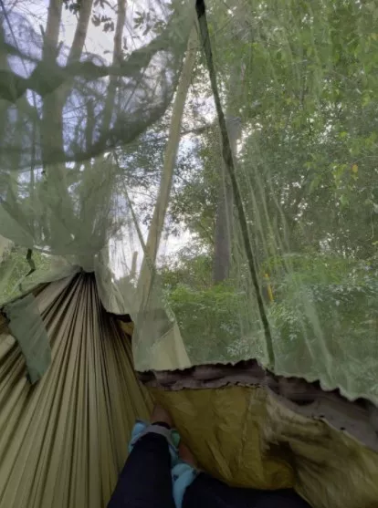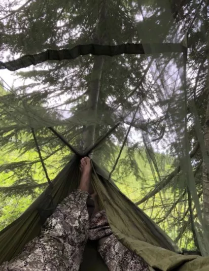 Used this hammock for 4 nights in the Olympic Nation Park, it was light, easy to set up, and very comfortable. I’d give it 5 stars but the tree straps that come with it are a little jinky and too short for most trees in Western Washington. Before I went on my trip I ordered different 20’ long straps.