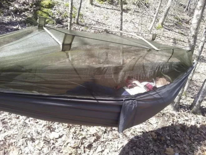Best mosquito hammockbout there for the money. Hammock very solid. Used it for 2 weeks out in the Mountains. One thing, be very careful, to give the mosquito netting enough slack so if you get in hammock and hammock not string tight it doesn’t rip out. Best to attach meeting to your hammock line so then bend together. Just a great solid hammock! Packs up nice n small too!