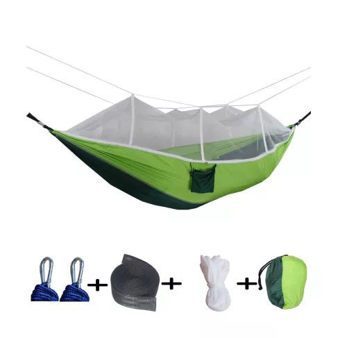 Pretty decent hammock for the price. I don't believe it's a true double as the title states, but it fit me fine (5'9' 170lbs). The built in mosquito net came in very handy although the zipper is not that high quality. It separated a couple of times but I was able to get it back together. The built in pouch is nice too because you can use it to store things in, like your headlamp for those late night bathroom trips.