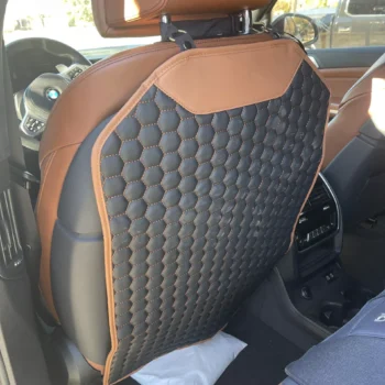 i’m so pleased with these kick mats. the eco leather is soft to the touch yet incredibly durable. my car seats were constantly getting dirty from my kids’ shoes, but these mats have kept them clean and scratch-free. they were very easy to install and they fit perfectly. the mats stay in place and don’t shift around, which is a big plus. cleaning them is super easy, just a quick wipe and they’re good as new. these kick mats are stylish and functional, making them a great investment for anyone looking to protect their car’s interior. highly recommend them.