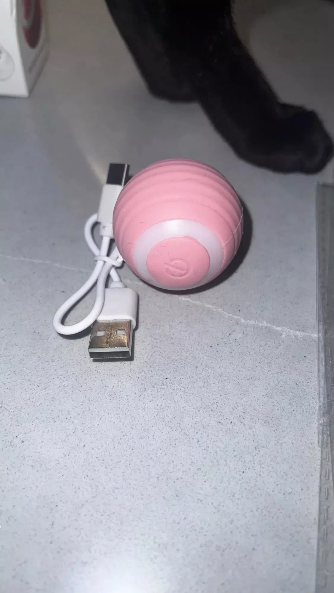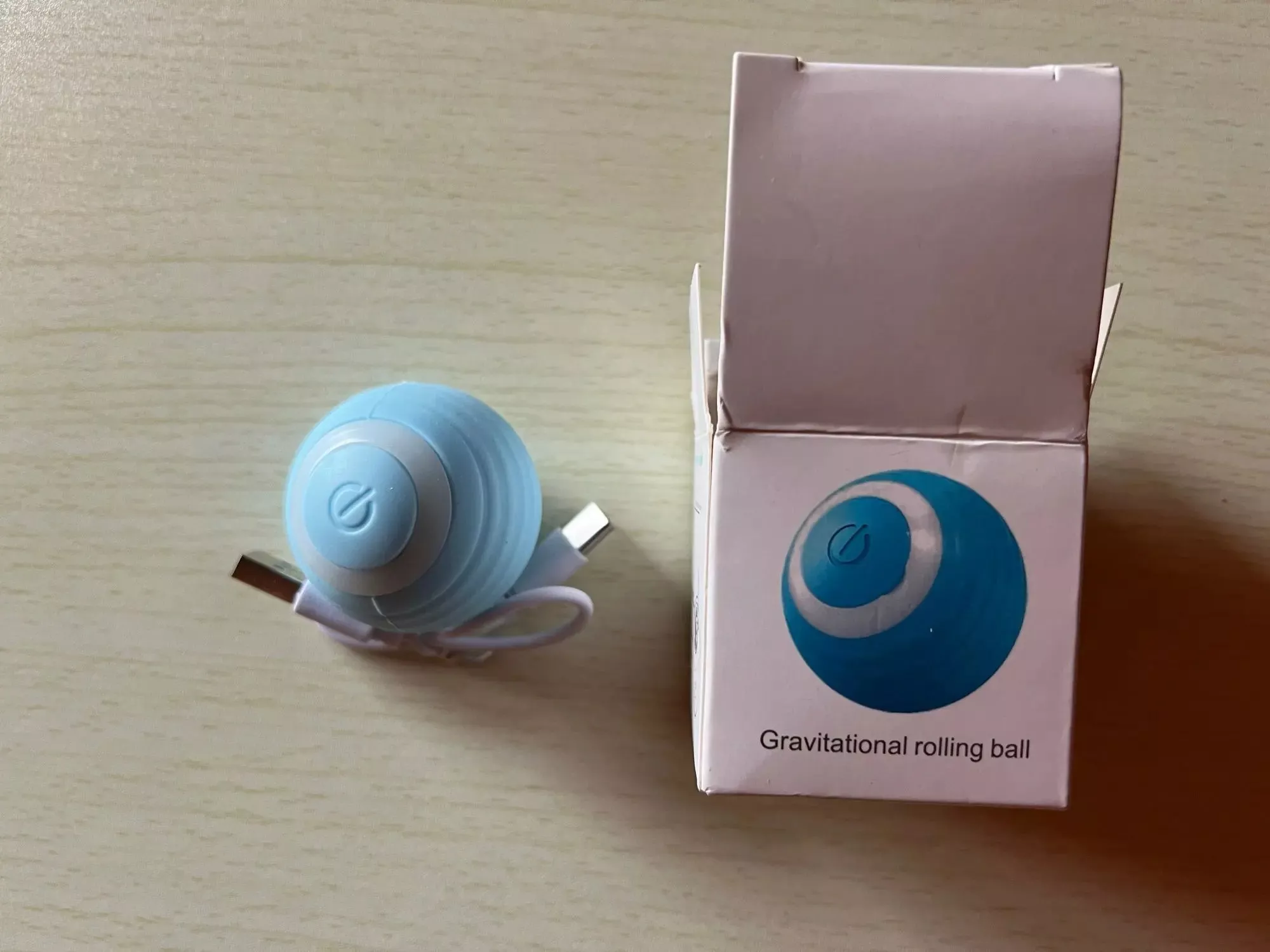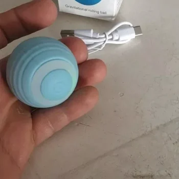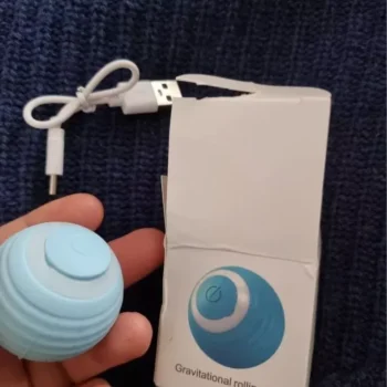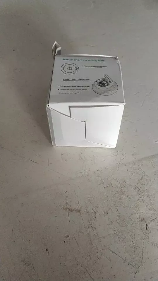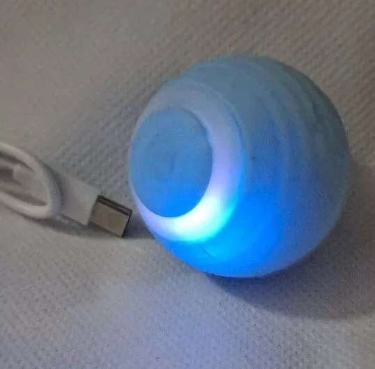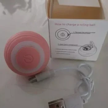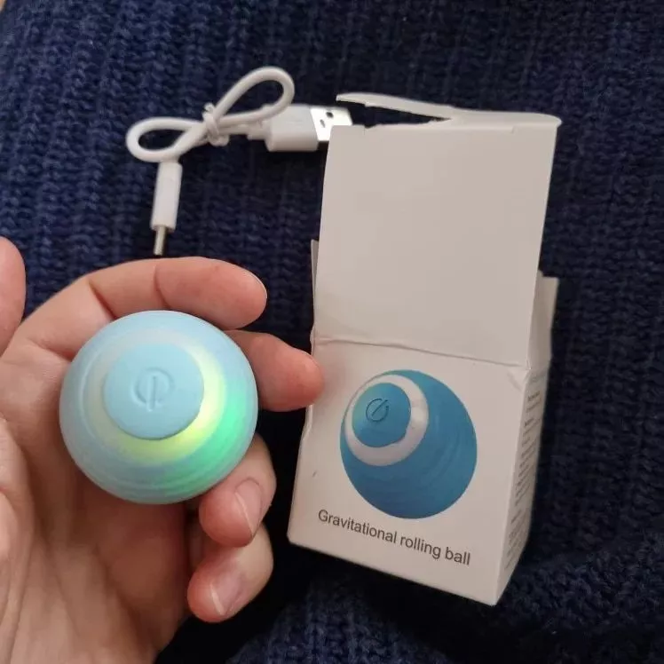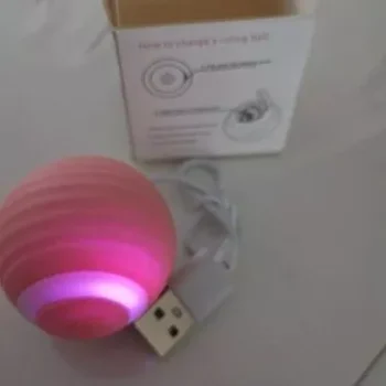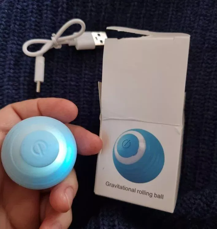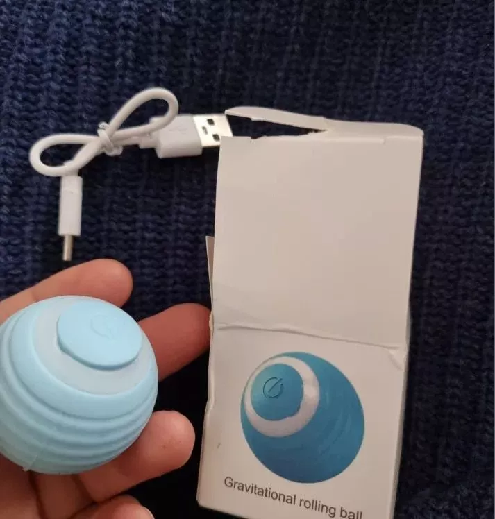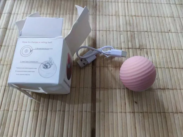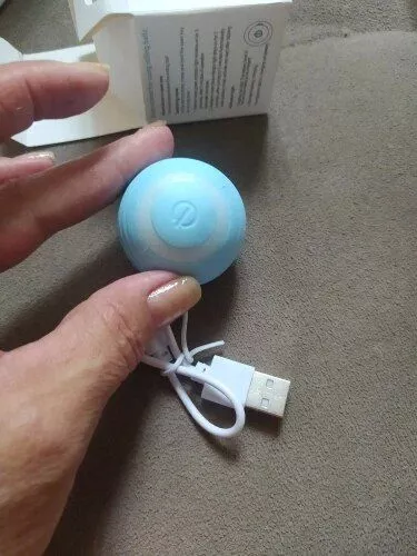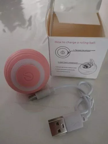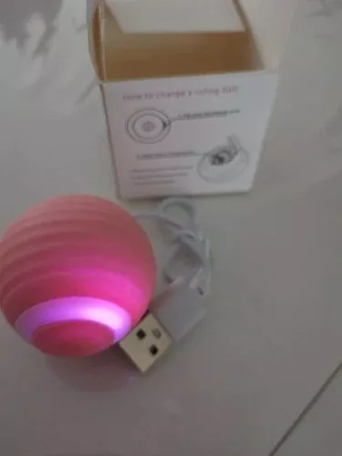 The ball was very good and everything arrived very quickly, it was recharged by USB so the box arrived somewhat touched but the ball that is the important thing arrived well, very happy with the purchase and my cat still liked it a lot, Has light while the ball moves changes color I recommend it is fine for the cat to play.