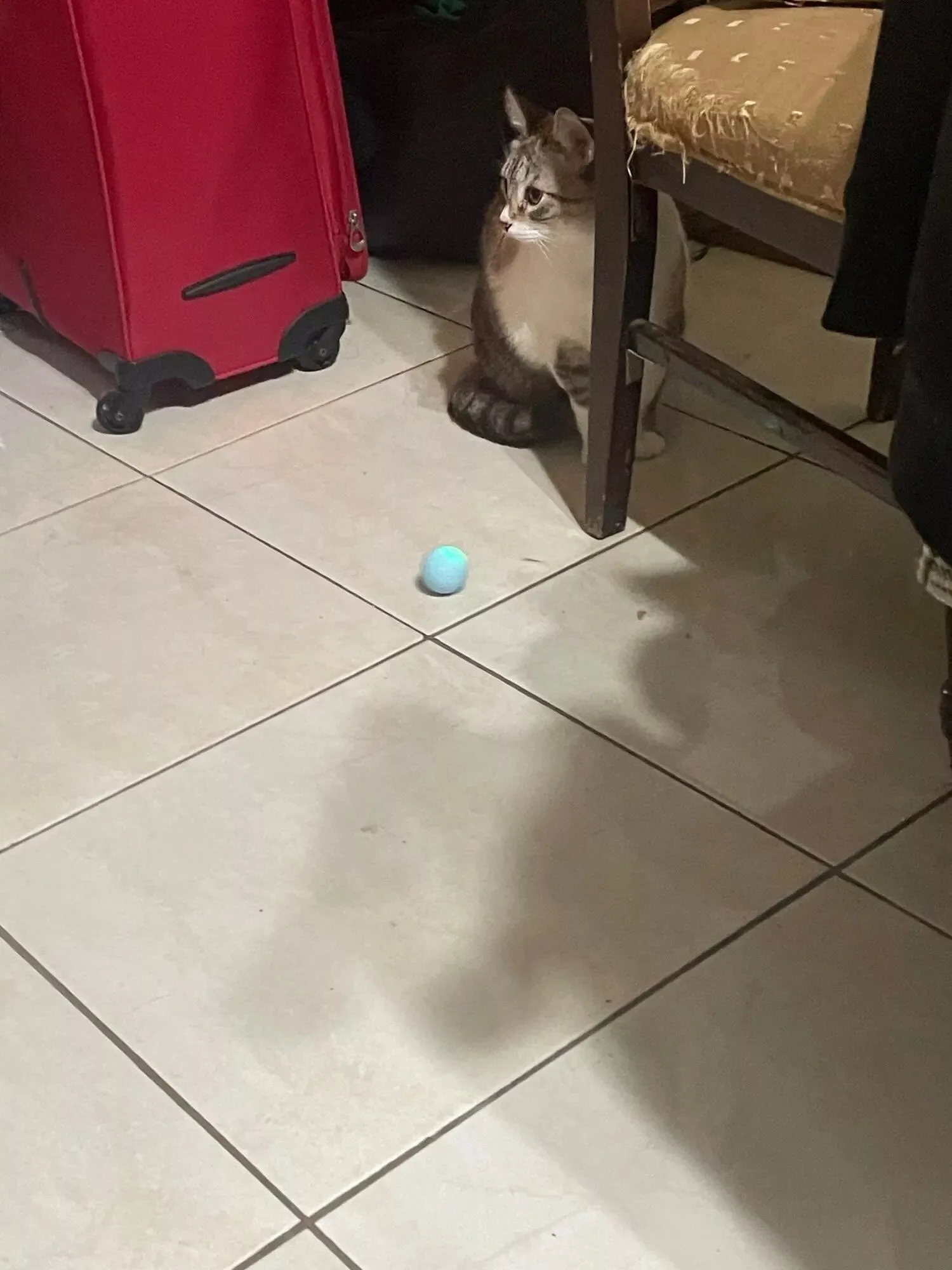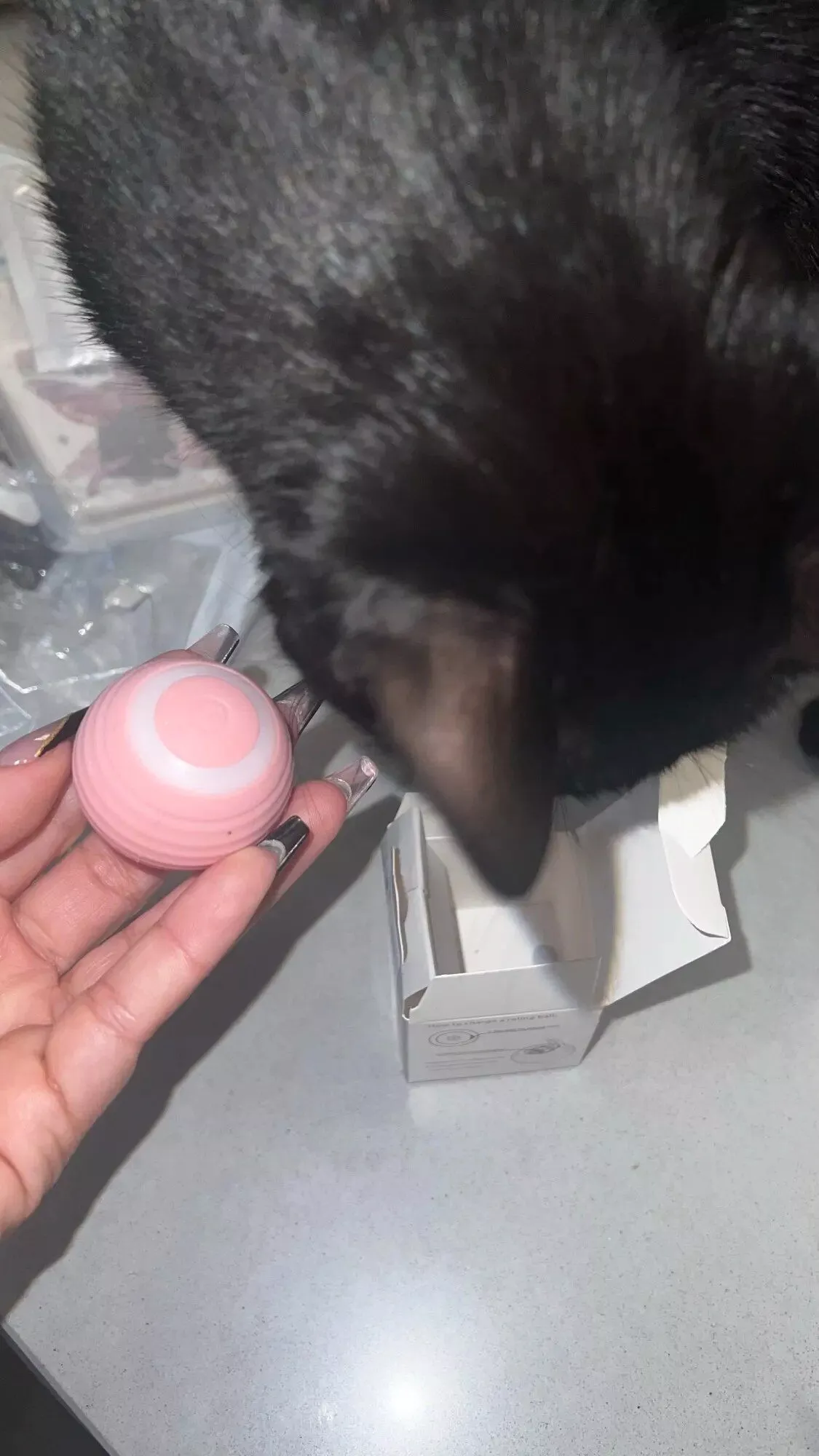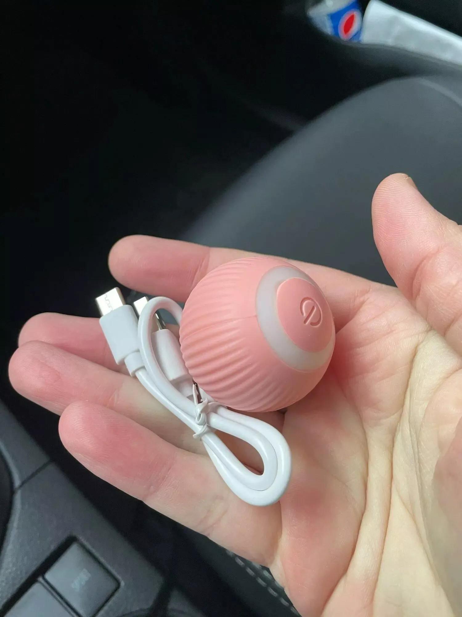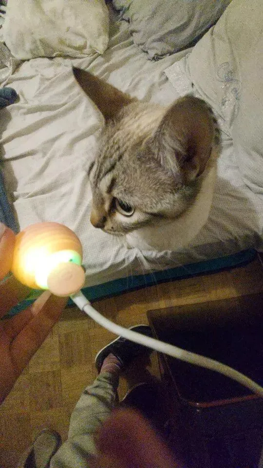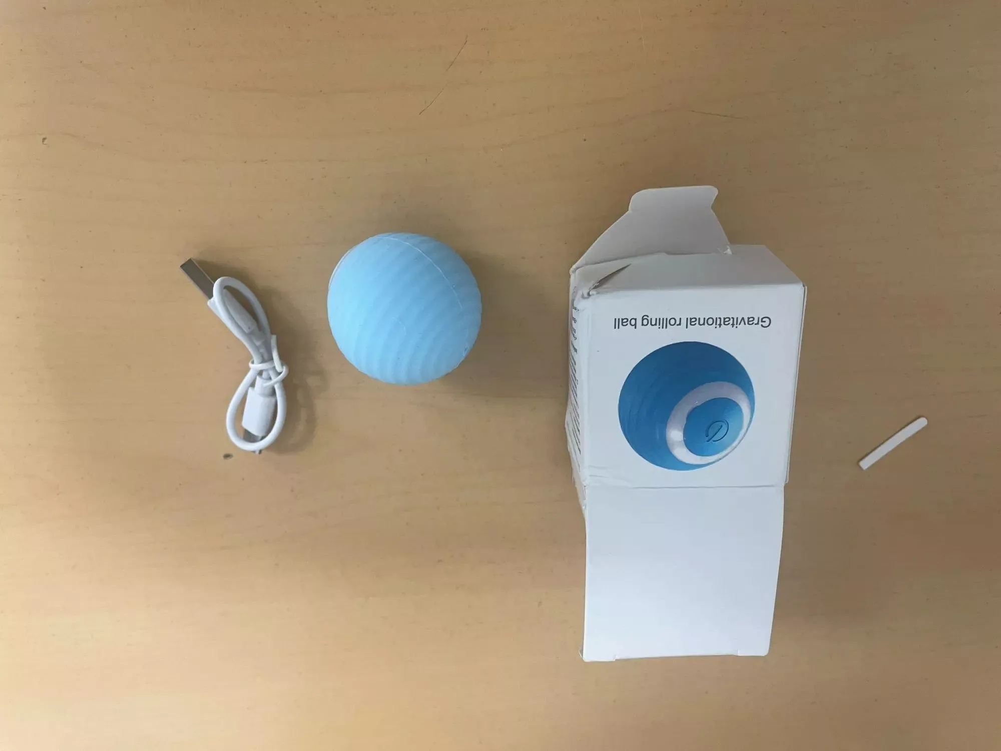 The ball was very good and everything arrived very quickly, it was recharged by USB so the box arrived somewhat touched but the ball that is the important thing arrived well, very happy with the purchase and my cat still liked it a lot, Has light while the ball moves changes color I recommend it is fine for the cat to play.