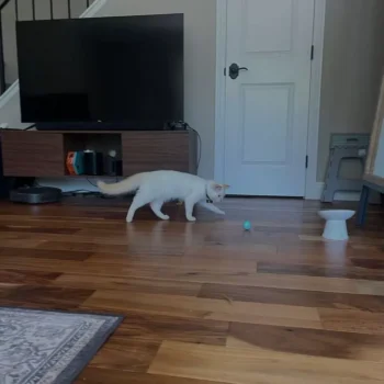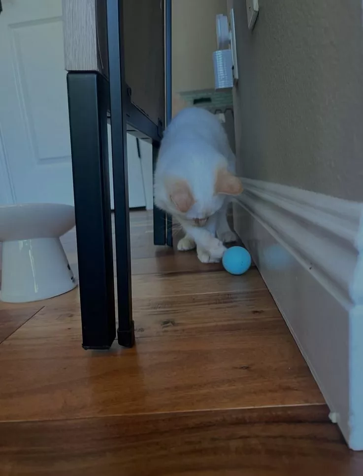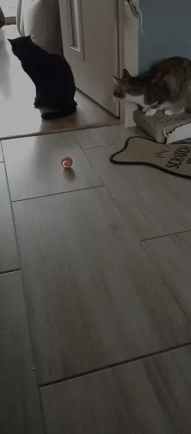 While the toy appears well-made and functional, our cats were too apprehensive to fully enjoy it. It rolled smoothly on hard floors but struggled on rugs, occasionally bouncing, which piqued the cats' curiosity, though they ultimately decided it wasn't their cup of tea.