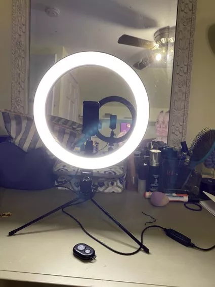 Flexibility is ahead of all other ring light sets. Basically you can put it everywhere like the floor, desktop or handbag when you’re not using it. It’s the ultimate all-in-one of ring lights.During this pandemic,I always do a lot of videoconferencing.I face the challenge of lighting at home.So I decided to order this ring light,which is a great purchase.