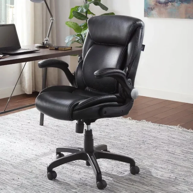 Crafted with stylish and durable bonded leather in black, gray, or brown, this chair not only adds elegance to your office but also offers lasting durability. Its ergonomic flip-up armrests provide additional comfort during computer work, writing, or gaming sessions.