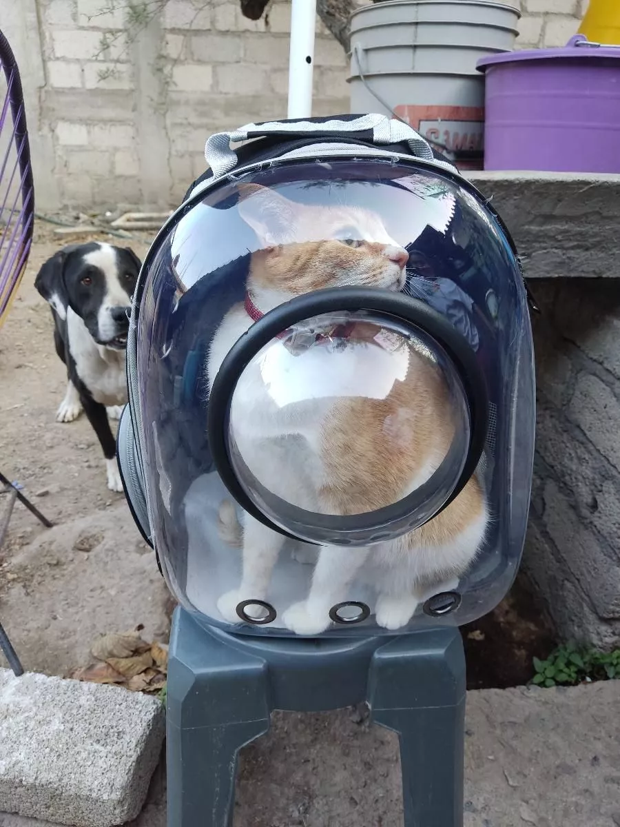 this cat backpack has been a fantastic purchase. my cat loves the spacious interior and the transparent design allows them to see everything, which keeps them calm and curious. the ventilation is top-notch, ensuring my cat stays comfortable and cool. the backpack itself is very sturdy and well-made, with padded straps that make it comfortable to wear. it’s stylish and i get many compliments on it. it’s perfect for vet visits, walks, or even just short trips. my cat feels secure and happy inside. it’s also easy to clean, which is a big plus. overall, i’m extremely satisfied with this backpack and would highly recommend it to other cat owners.