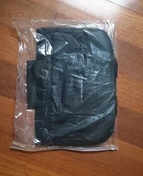 Great product, very good quality material. My old one was floppy and made of nylon. This one is ridged and keeps its shape. My 4yr old was very pumped about the fold down tray table too.
