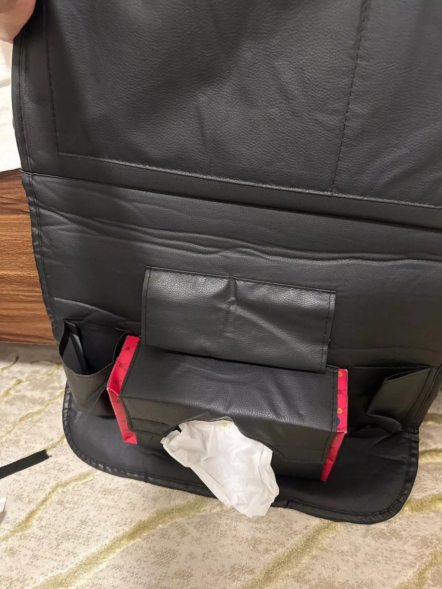 As someone who recently upgraded to a brand new Jeep Grand Cherokee L, I wanted to ensure that the backseat remained organized and functional for my two kids, without sacrificing style. This organizer was a promising solution, boasting not just functionality but an aesthetic appeal that caught my eye. Upon arrival, the quality of the material was immediately apparent, with the PU leather feeling both luxurious and durable. The fit was perfect, as if it was made specifically for my Jeep, and the installation process was straightforward. The additional storage space it provided was invaluable, keeping everything from toys to snacks neatly organized and within easy reach for my kids. The foldable tray became an instant hit, providing a stable surface for eating or playing, making it an indispensable feature for any family trip. While I did notice a distinct smell initially, reminiscent of the manufacturing process, it dissipated after a few days and hasn't been an issue since. In terms of improvements, it would be great to see a version with even more storage options or customizable pockets for those of us who love to have a place for everything. However, this is more of a wish than a criticism, as the product already exceeds expectations in its current form. For families looking to enhance their travel experience without compromising on style or functionality, this backseat organizer is a top-notch choice. It not only keeps your vehicle tidy but also adds a layer of sophistication to your interior. Highly recommended for anyone looking to elevate their car's backseat from merely functional to luxuriously organized.
