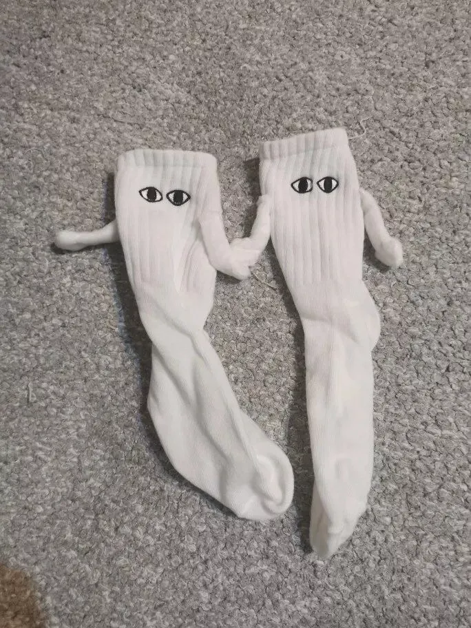I can’t get enough of these cartoon eye couple socks. the magnetic attraction feature is such a creative and fun idea. the socks are incredibly soft and comfortable, making them perfect for all-day wear. the quality is outstanding, with durable stitching and vibrant colors that don’t fade after washing. the cartoon eye design is adorable and always brings a smile to my face. i love wearing these socks with my partner; it adds a playful touch to our outfits and makes us feel more connected. these socks have quickly become my favorite, and i highly recommend them to any couple looking for a unique and fun way to express their bond.