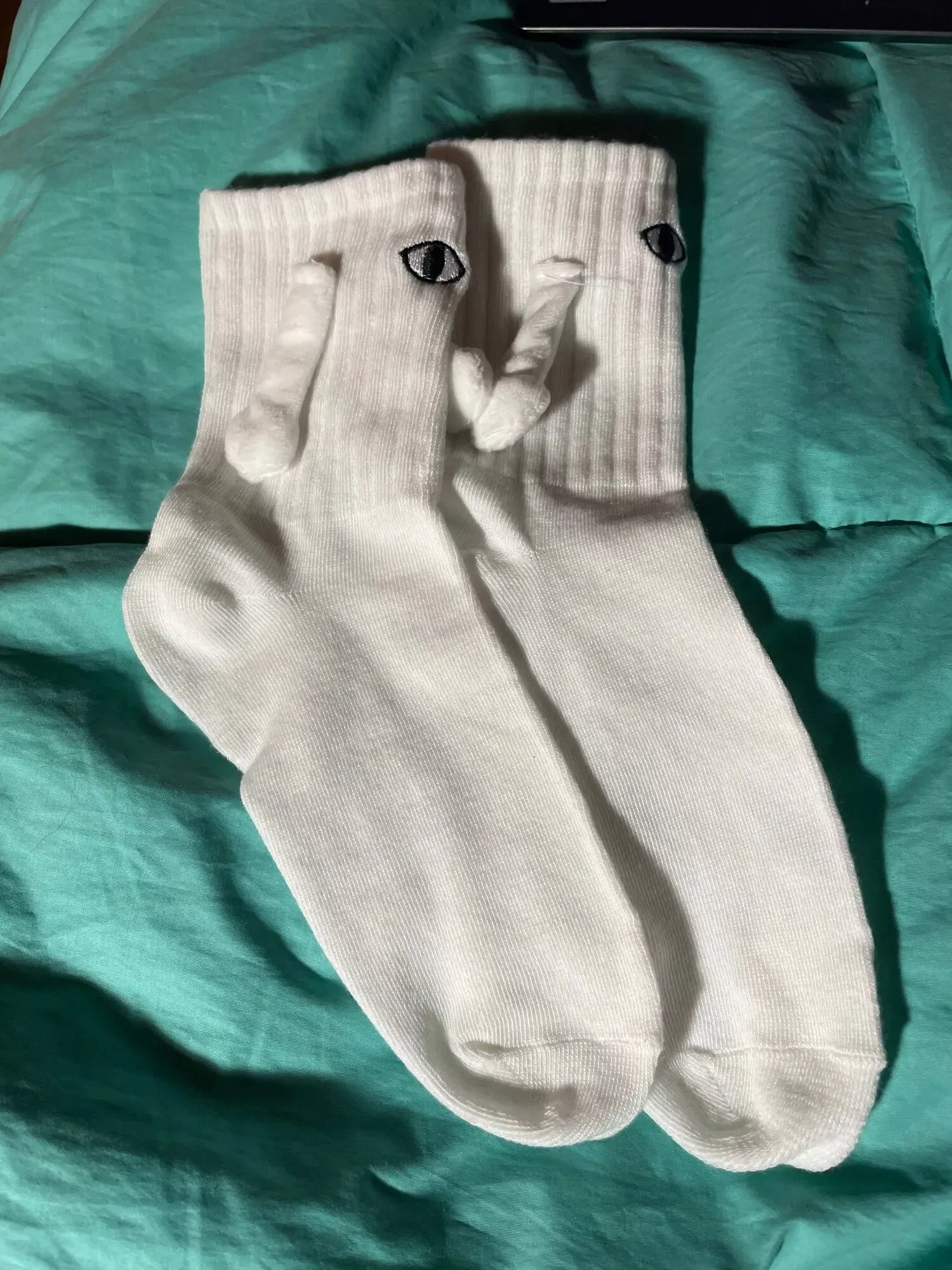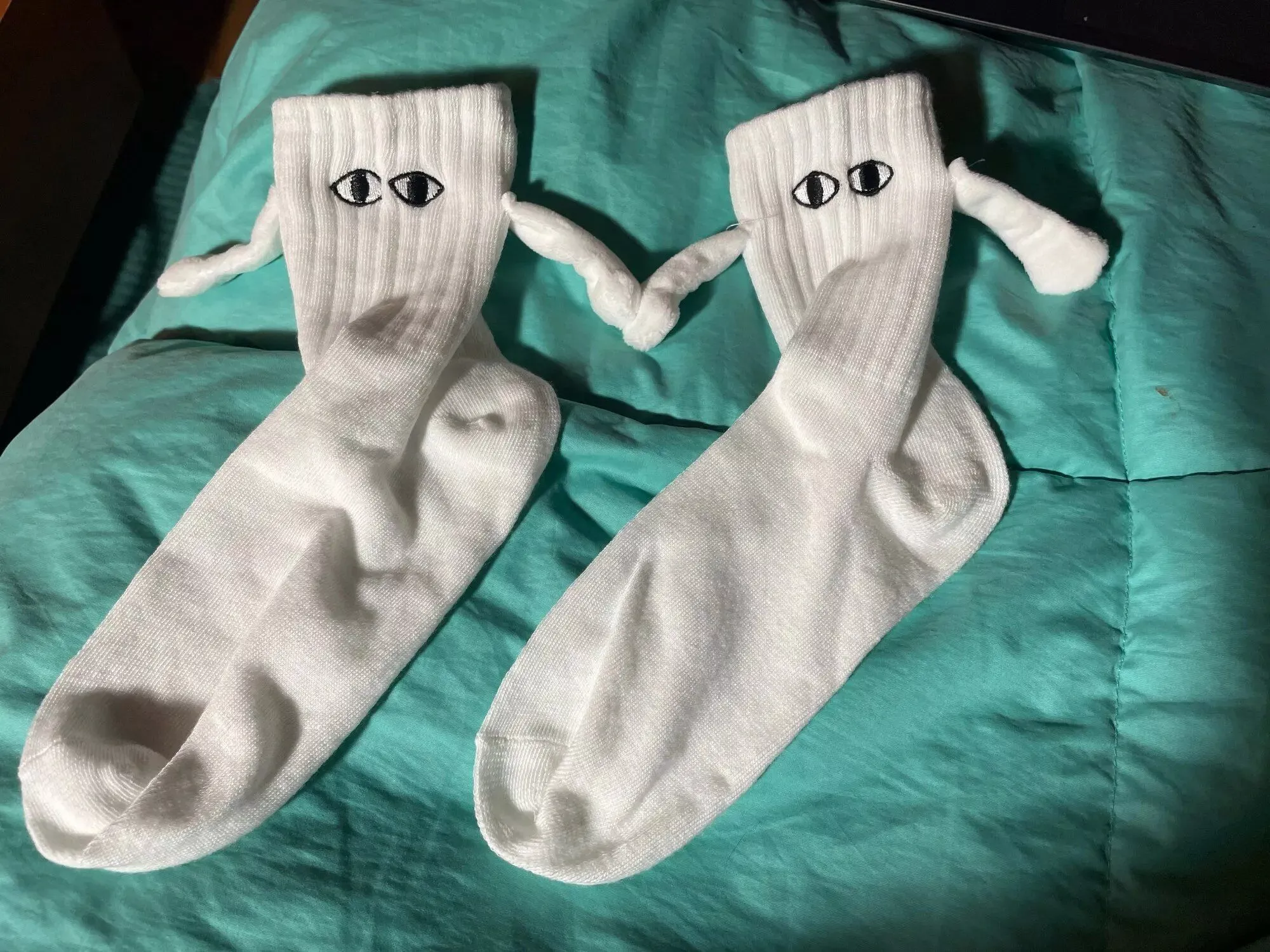 I’m in love with these cartoon eye couple socks. the magnetic attraction feature is so fun and unique. the socks are incredibly soft and comfortable, with a great fit. the quality is excellent, with vibrant colors and durable fabric. wearing them with my partner is such a cute and playful experience. we get compliments on them all the time. these socks are a must-have for any couple looking to add some fun to their everyday wear.
