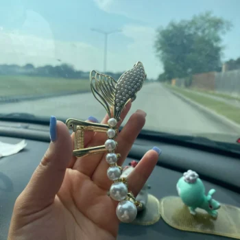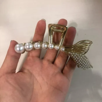 I think this is an excellent hairpin! It’s very good looking, has an unusual design. It is quite big but not heavy at all. It holds hair very well (I have quite a long one) but at the same time it does’n scratch the skin. And these tiny pearls at the tail are so cute and vell made!