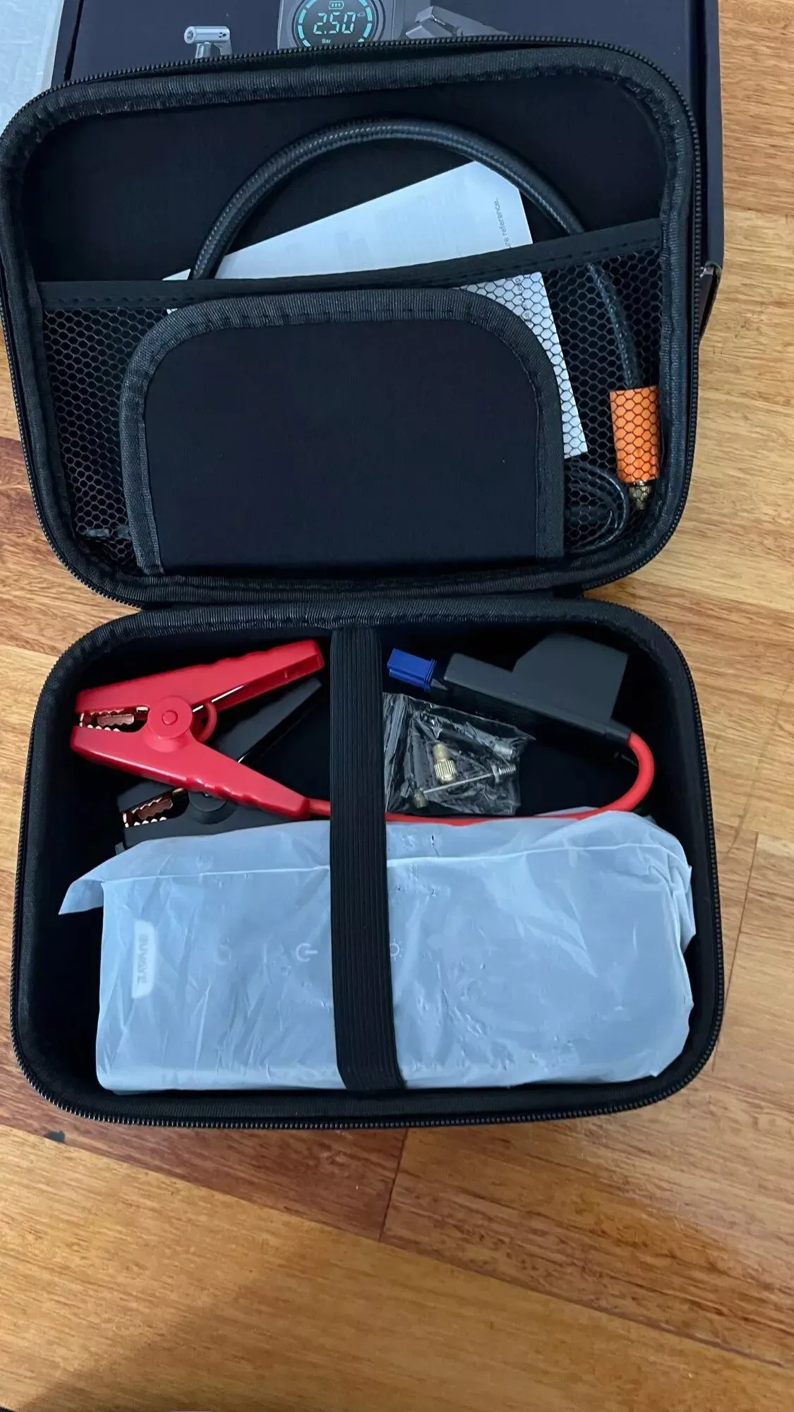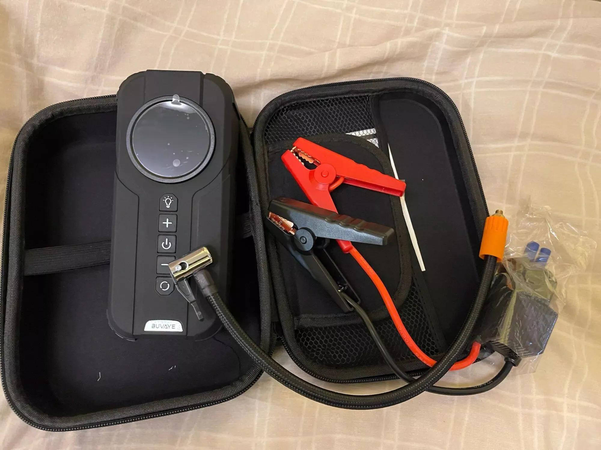 This battery booster makes starting your car a breeze; you just attach the clips and wait for the light to turn green before starting your car. Even as someone new to this, I was able to get my car, which hadn't been used for a year, started pretty quickly. It also doubles as a mini compressor for inflating tires, a power bank, and an LED lamp. It's a gadget I now always keep in my vehicle!