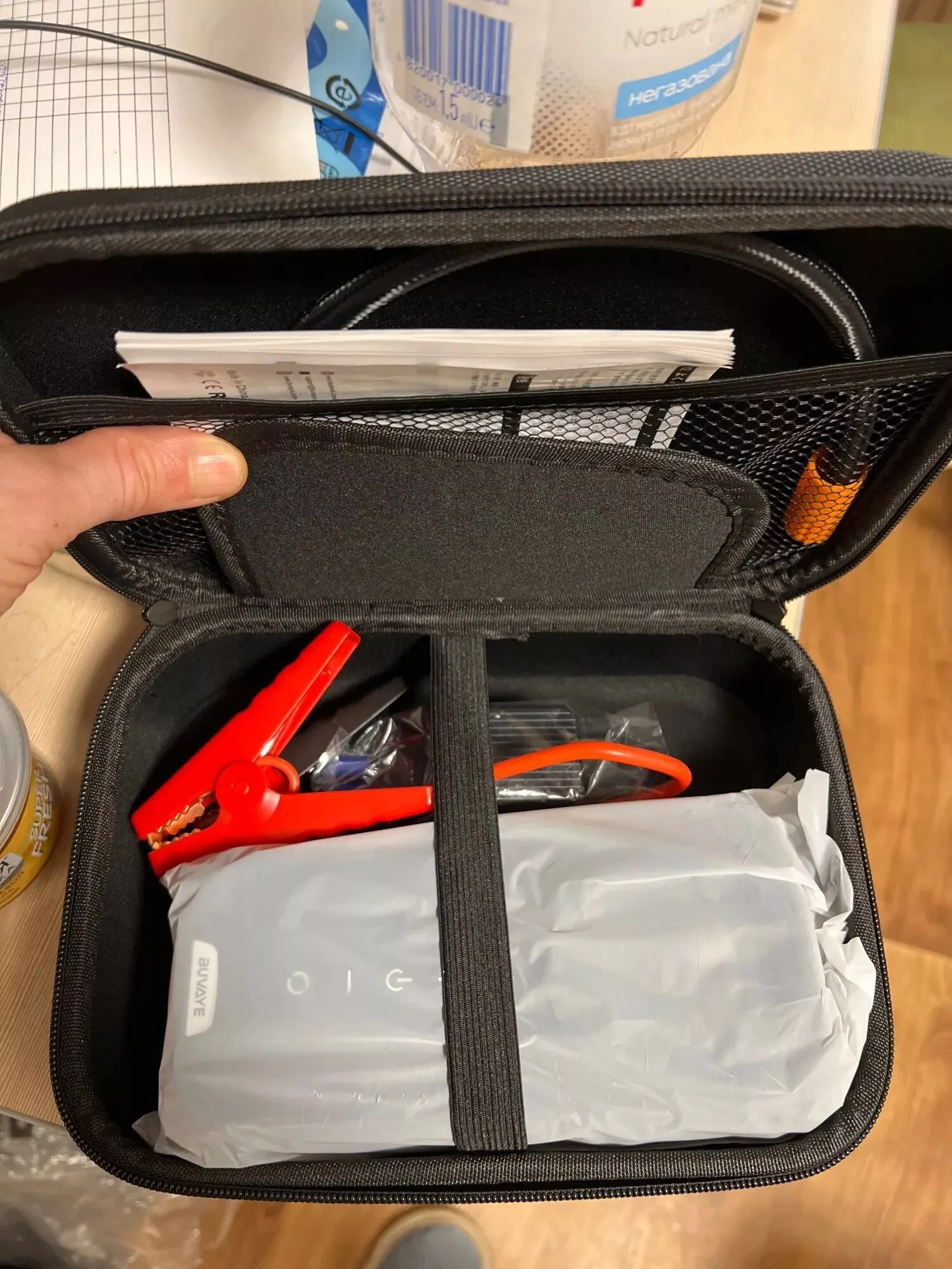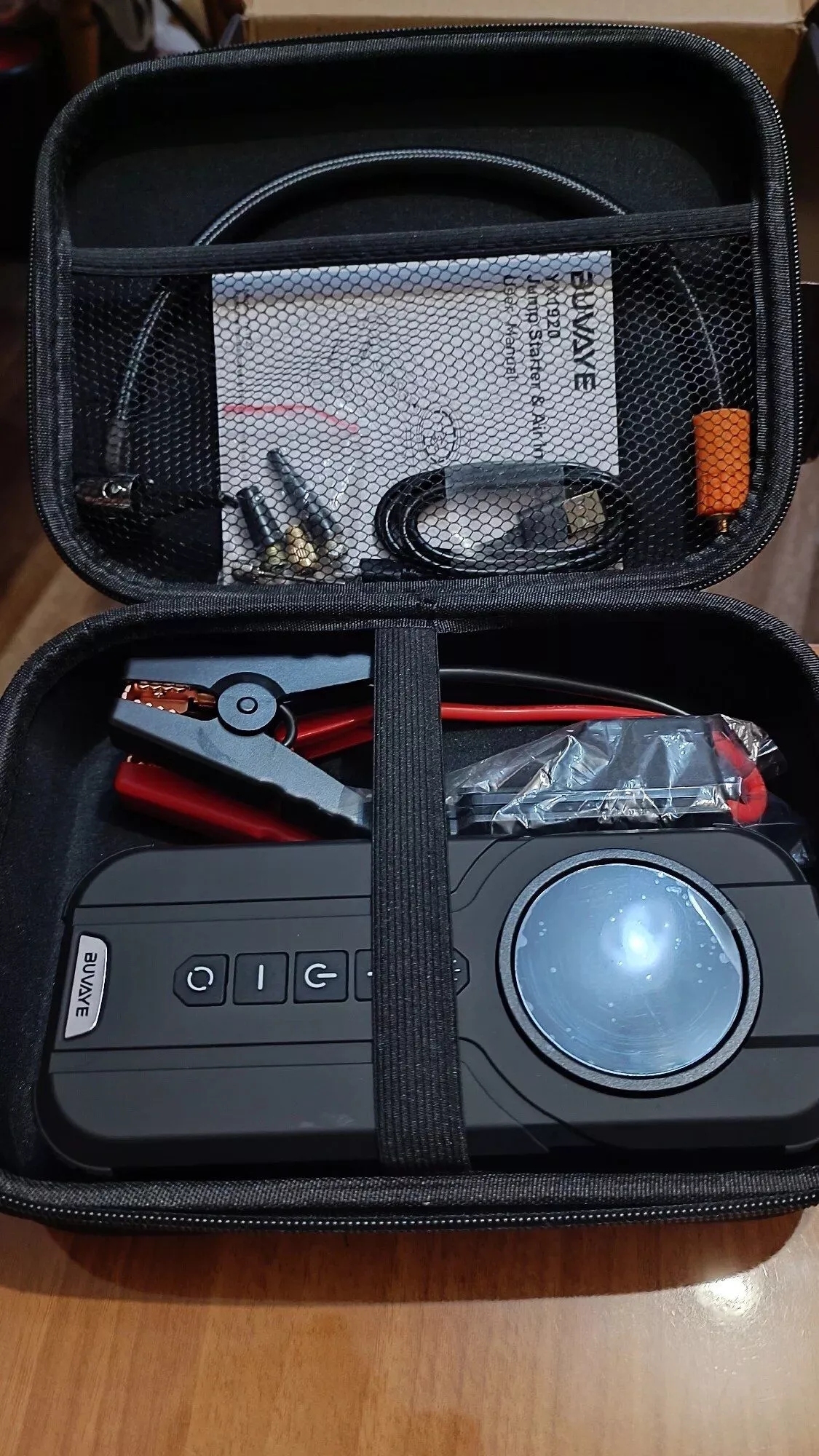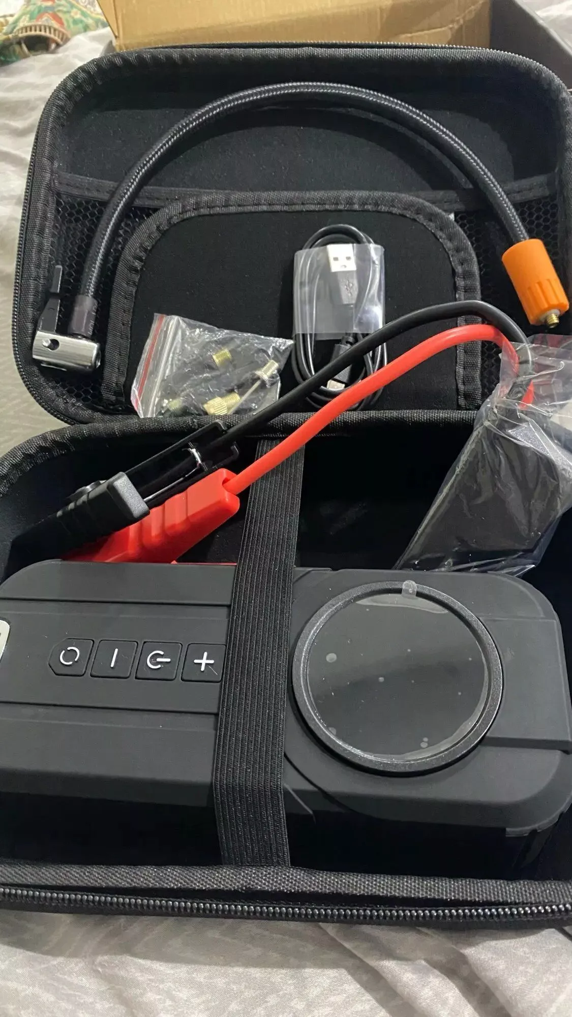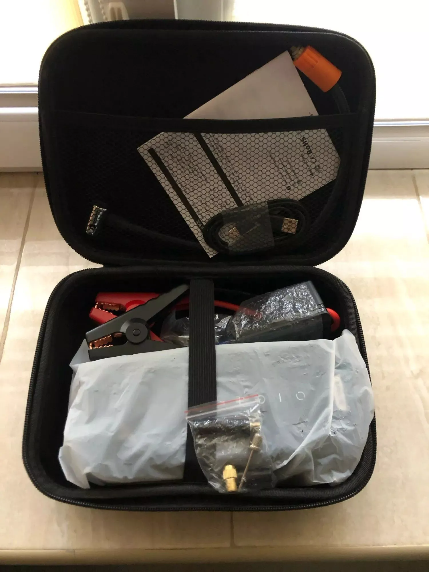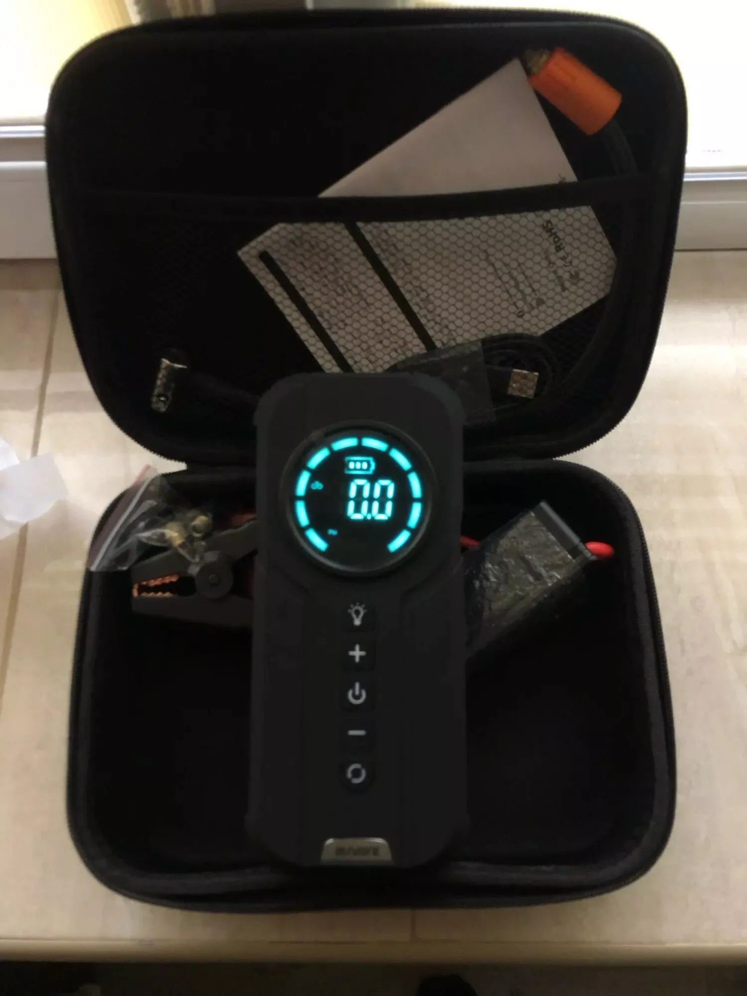 Friends, I've got great news! I wholeheartedly recommend this for anyone needing a reliable emergency power source for outdoor and car use. It comes with an Eva bag, and everything works flawlessly. I've tested all the features, and what amazed me the most is its ability to start a car even if the battery is completely dead. You can connect the cables directly to the terminals without any battery connection, meaning you can start your car even with a fully discharged battery. I've managed to start my car 4 times, and the device's battery remained at 100%. I absolutely love this device. Note that there might be other sellers offering similar products at a lower price, but they may not match the power of this one. This is a guarantee, friends. If you hear any feedback saying otherwise, it could be because it's not the same model or they're not using it correctly. Remember to charge it for at least 12 hours before the first use.