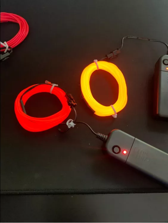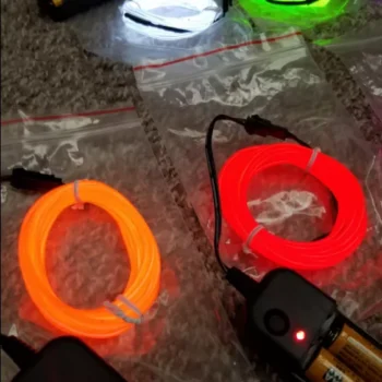 These are great! I used them to make faux neon signs for my friends for Christmas. I bent a piece of wire into their names, and then I hot glued the EL wire to that. They’re true to color, bright and and easy to work with. They do make the buzzing sound that I’ve seen other people mention in their ratings, but it is really only noticeable if you’re right by the item when it’s turned on.