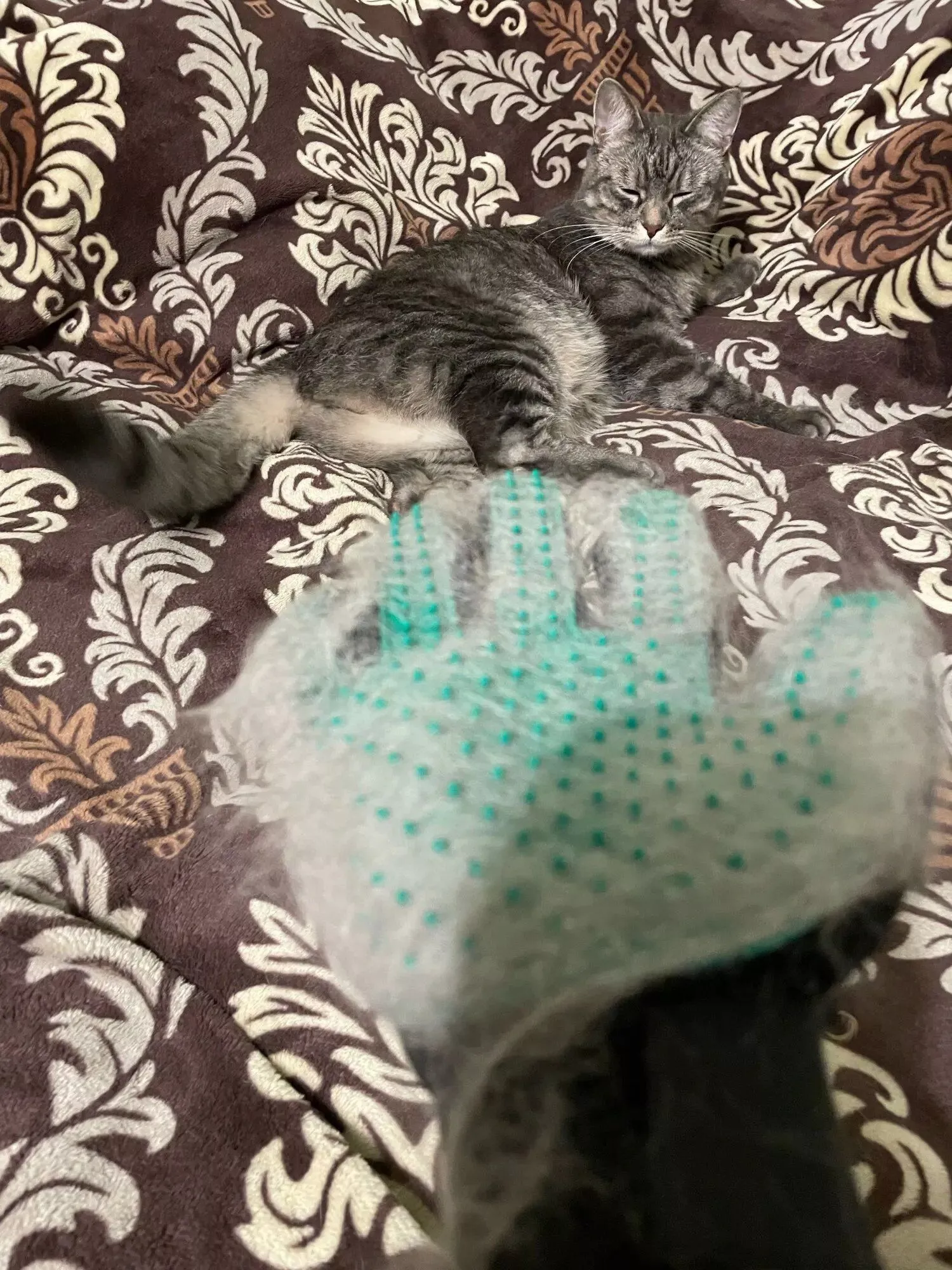 My cat adores this grooming glove. It mimics the loving touch of my hand while keeping her coat looking great!