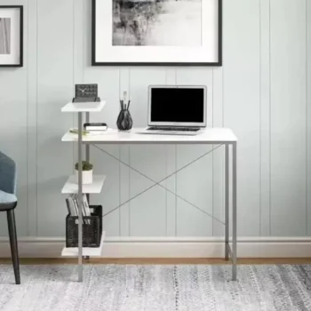 Minimalist Parsons Desk with Chevron Design & Storage Drawer