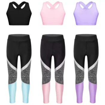 Girls’ Yoga & Workout 2-Piece Set: Sleeveless Crop Top and Leggings