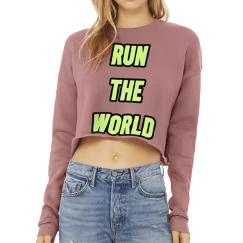 Run the World Cropped Sweatshirt – Best Quote Women’s Sweatshirt – Cool Graphic Crop Crew Sweatshirt