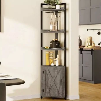 5-Tier Industrial Corner Bookcase with Wine Glass Holder