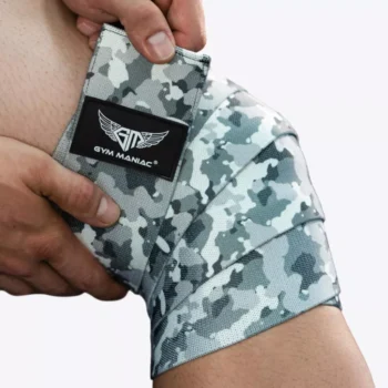Gym Maniac Light Gray Camo GM Support Compression Knee Wraps