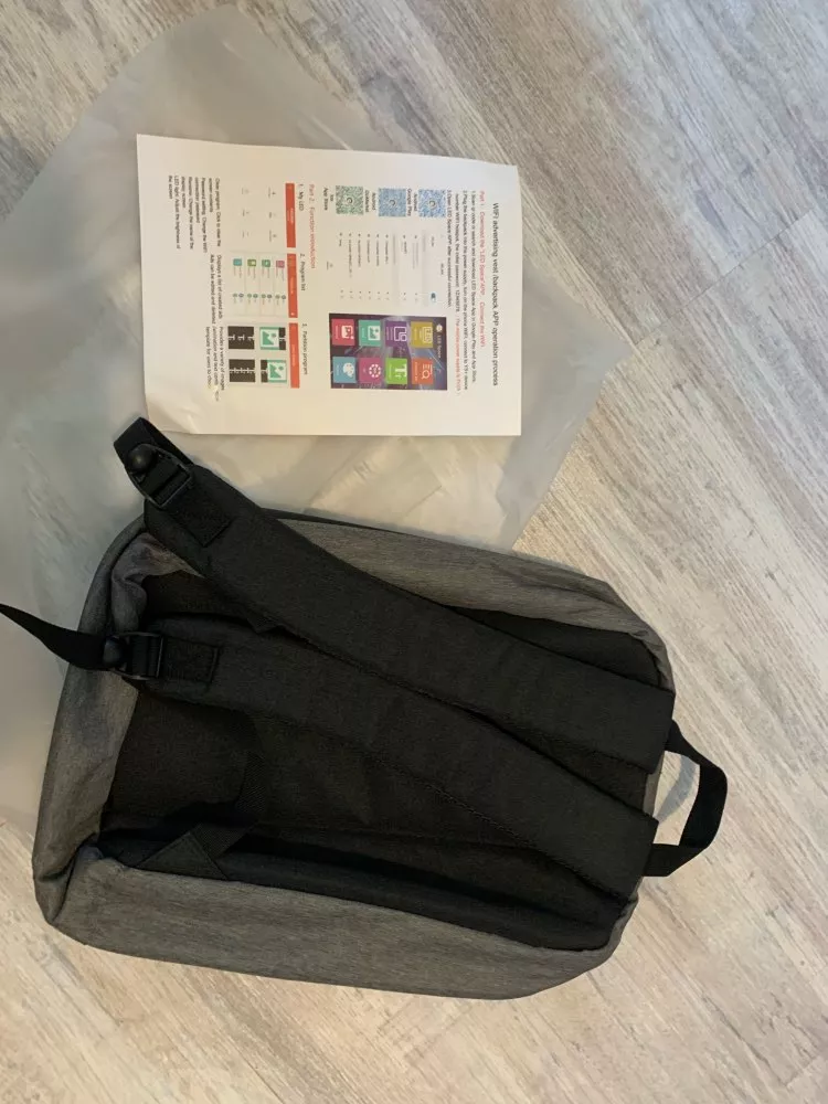 Amazing product I bought this almost a year ago and have worn it nearly every day its spacious inside and very easy to adjust the outside display. However It does NOT come with a power source you should buy it with a portable USB Charger. Also as one may expect. It doesn't handle rough travel well (tossing dropping or throwing the bag) the wires may short out.