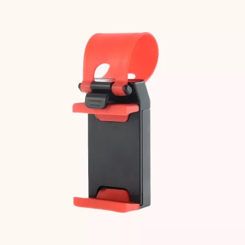 I've been using this car steering wheel phone mount for a few weeks now and I'm impressed. The high-quality build is immediately noticeable, it's sturdy and well-crafted with top-notch materials. It fits my device snugly thanks to the elastic design which really comes in handy on bumpy roads. Plus, the soft silicone pad ensures that there are no scratches on my device - a thoughtful addition indeed! As someone who values aesthetics, the sleek red finish adds a chic touch that I absolutely love.