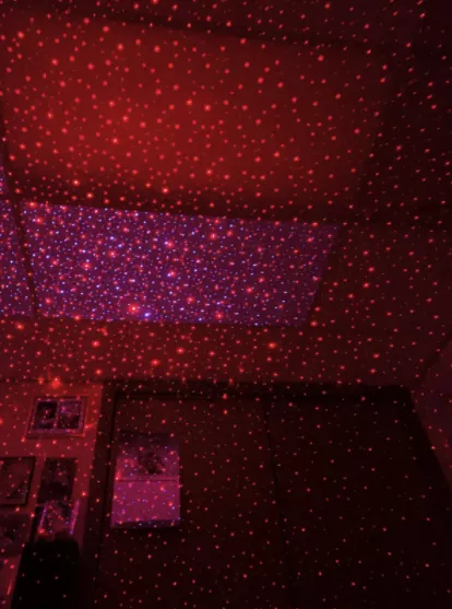 As the picture. The quality is good and arrived really fast. Great work! Be sure you have enough room for this to stick out. I had it plugged into an adapter and then in the wall. Sticks or into room quite a bit. It's tempting for grandsons to look into the laser... Very bright and not safe to do that! I had to move it out of their room. Should have read more carefully that it's @6" of "stick". The little lights are very cool. So....I got a lightbulb adapter and plugged it into a little lamp. Now it's safe and still provides really cool lights at night. Grandsons love it.