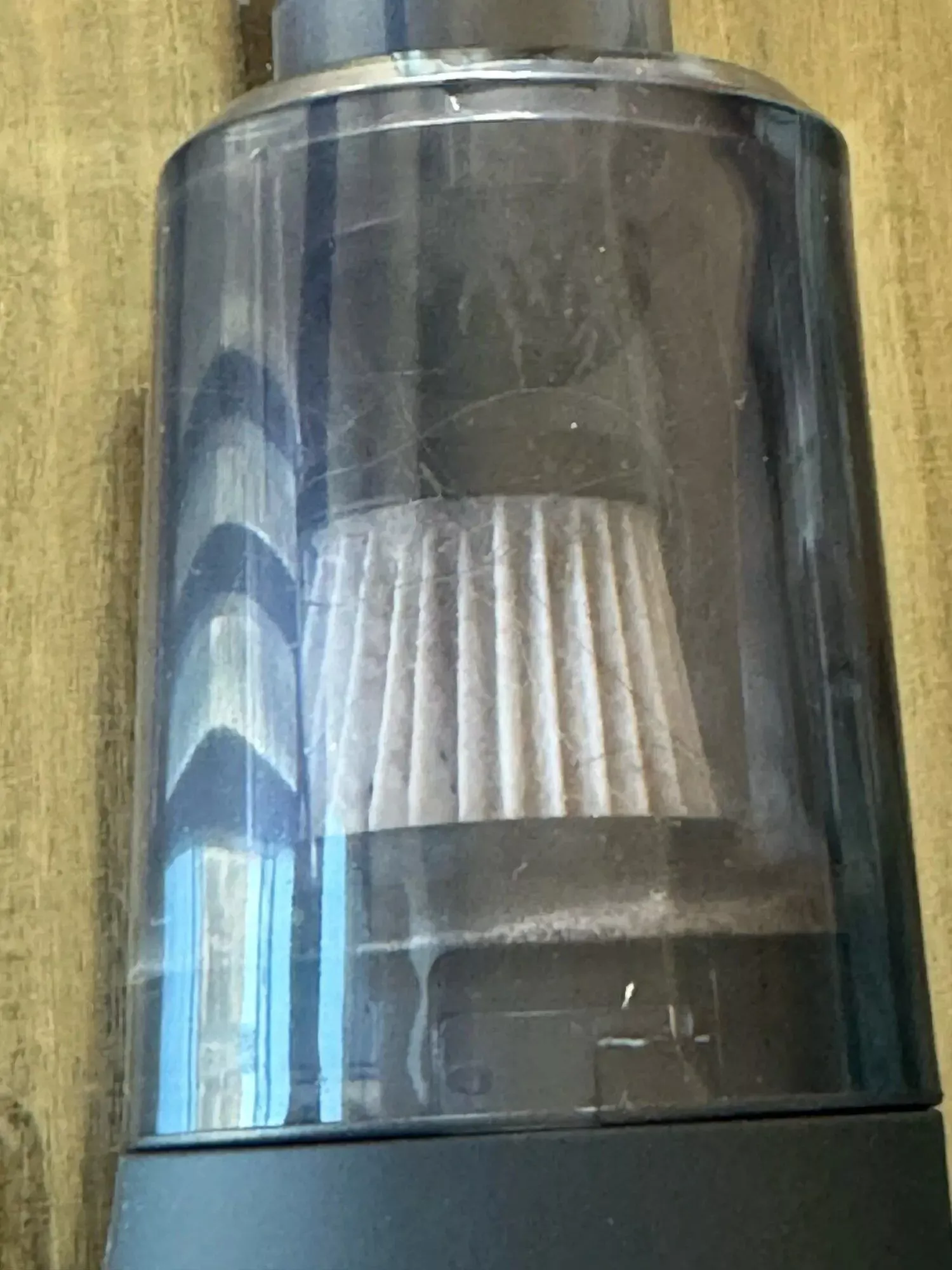 This sleek, cordless Vacuum/Blower is incredibly efficient, quickly filling the dust collection bin to capacity. I discovered that when the vacuum is angled downwards and switched off, the one-way valve doesn't seal tightly enough to keep the trapped particles from spilling out. I've since learned to avoid positioning it this way.