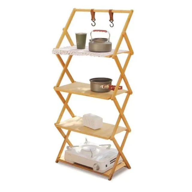 Whether you’re camping under the stars, hosting a backyard barbecue, or simply in need of extra storage space at home, our bamboo folding rack is your go-to solution. Its robust construction ensures it stands up to the rigors of outdoor use, while its elegant design makes it a stylish addition to any indoor space.
