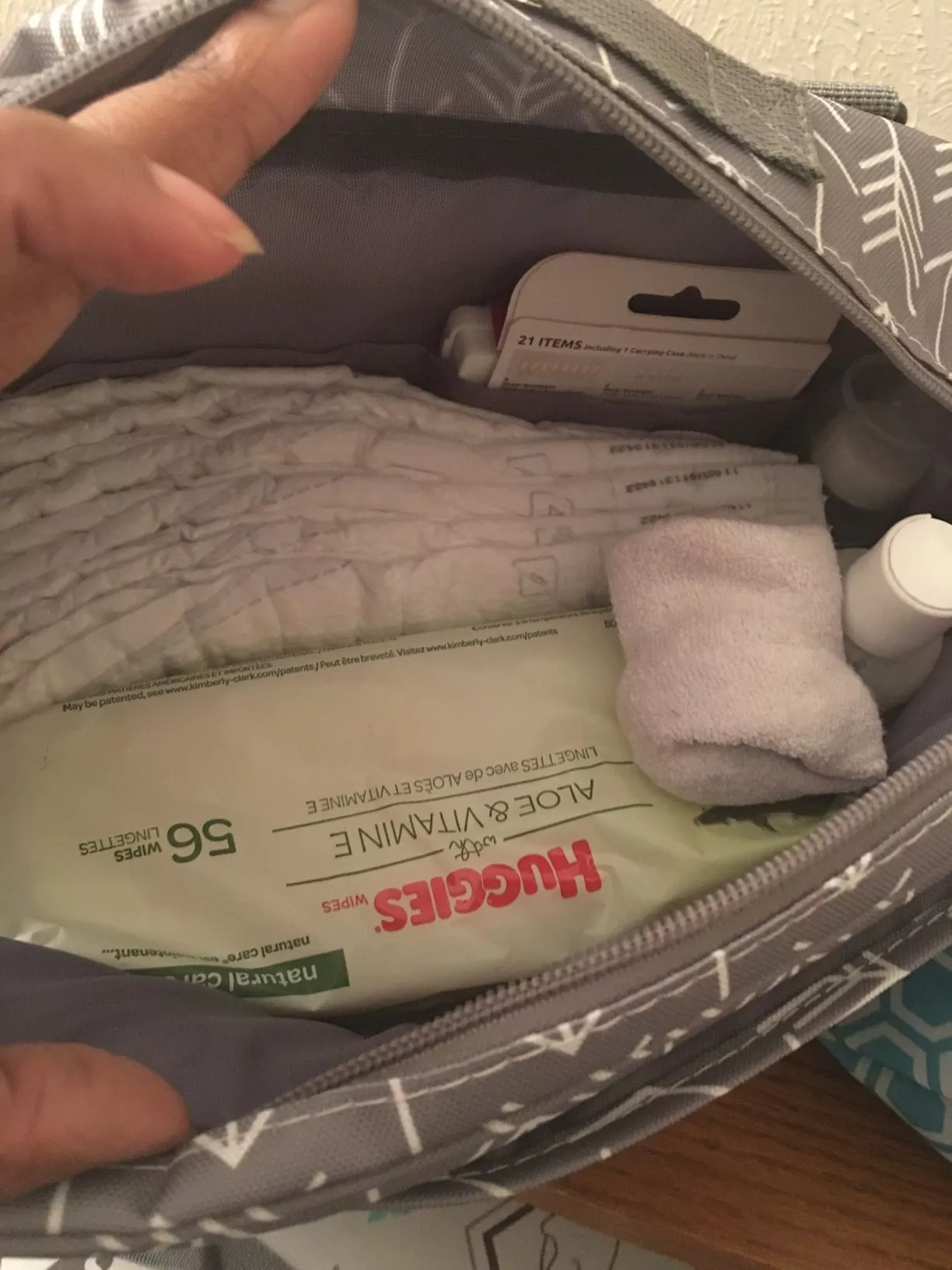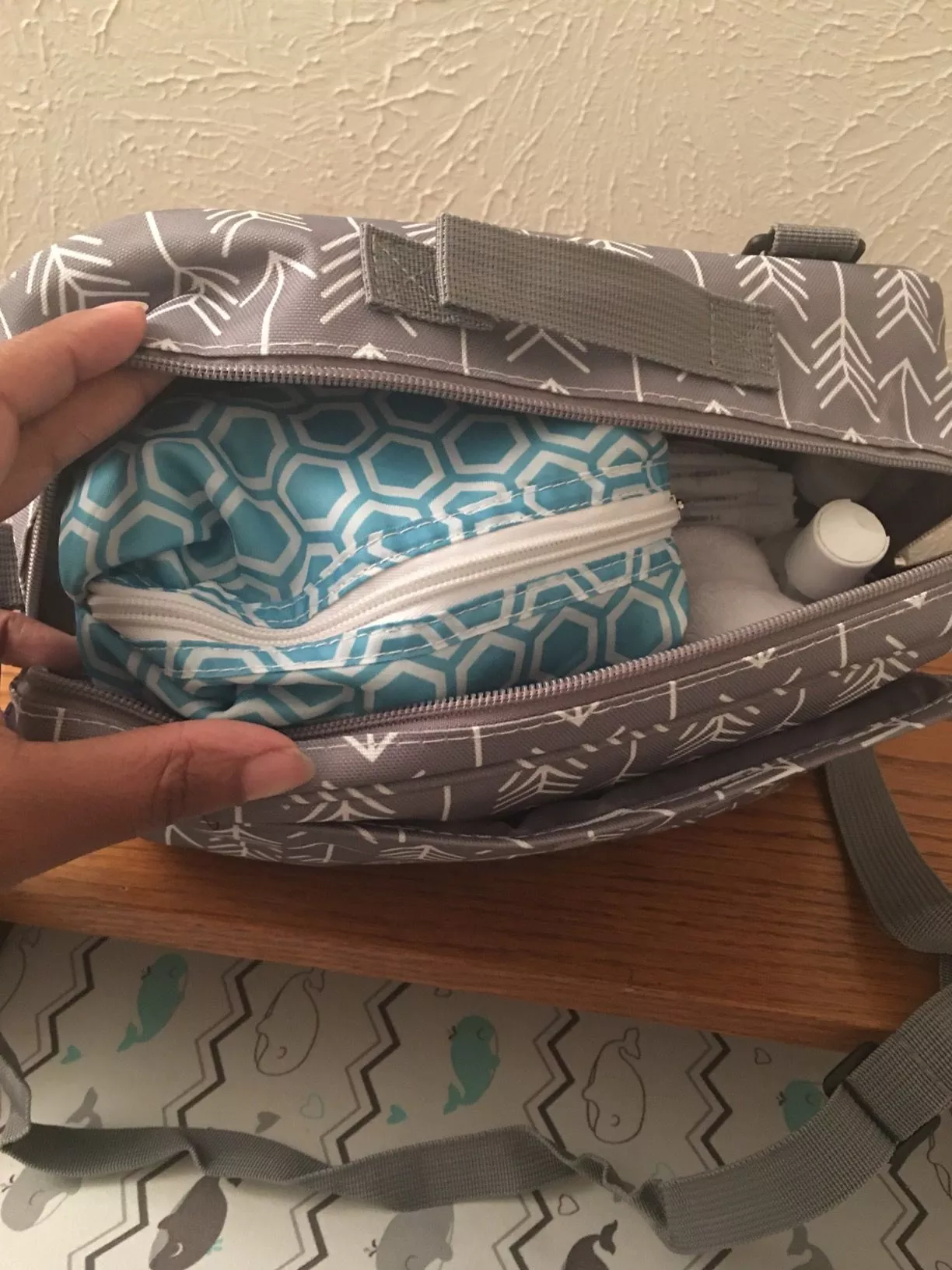 I'm totally in love with this compact yet surprisingly spacious diaper bag! It's been a game-changer for me, especially when I'm on the go and don't want the hassle of carrying a massive diaper bag around. Everything I need for a quick outing fits in perfectly. I've even managed to squeeze in some baby medicine and chest rub, plus a tiny first-aid kit in the side pocket, which is incredibly handy for unexpected bumps and bruises. There's still plenty of room for a hygiene bag and snacks, which is fantastic for longer days out when you need a bit more than the bare essentials. The design is so well thought out, with pockets and compartments that make organizing a breeze. I particularly love how there's a specific place for everything, yet it doesn't feel cramped or cluttered. The only thing I'm still figuring out is the best spot for the baby's cup, but I'm confident that with a little rearranging, everything will fit in seamlessly. Perhaps using some of the creative packing techniques mentioned in other reviews will do the trick. Moreover, the convenience of not having to lug around a bulky bag while still having quick access to diapers, wipes, and other necessities cannot be overstated. It's incredibly freeing to be able to focus more on enjoying my time out with my little one rather than worrying about where to stash a large diaper bag. The strap and stroller clips are a fantastic addition, making it even easier to carry or attach to the stroller, further enhancing its portability and practicality. This bag truly combines functionality with style, making it a must-have for any parent looking for an efficient, stylish solution for carrying their baby's essentials.