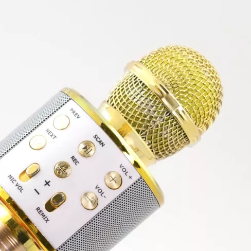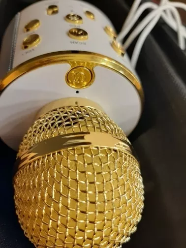 Feature packed, my wife loves this microphone! She uses a singing app and wanted her own microphone, instead of using her phones built-in microphone. It sounds great, speaker quality is good, and has nice LED's that flash with the volume of her voice. Charges through an older micro-usb cable, which is a bit outdated, but for the price, I can't complain. plays music easily with the included Last, Next, Pause/Play. Power button was hard to find, it's actually at the top and blends in with the dazzling silver! All-in-all, a good quality microphone!
